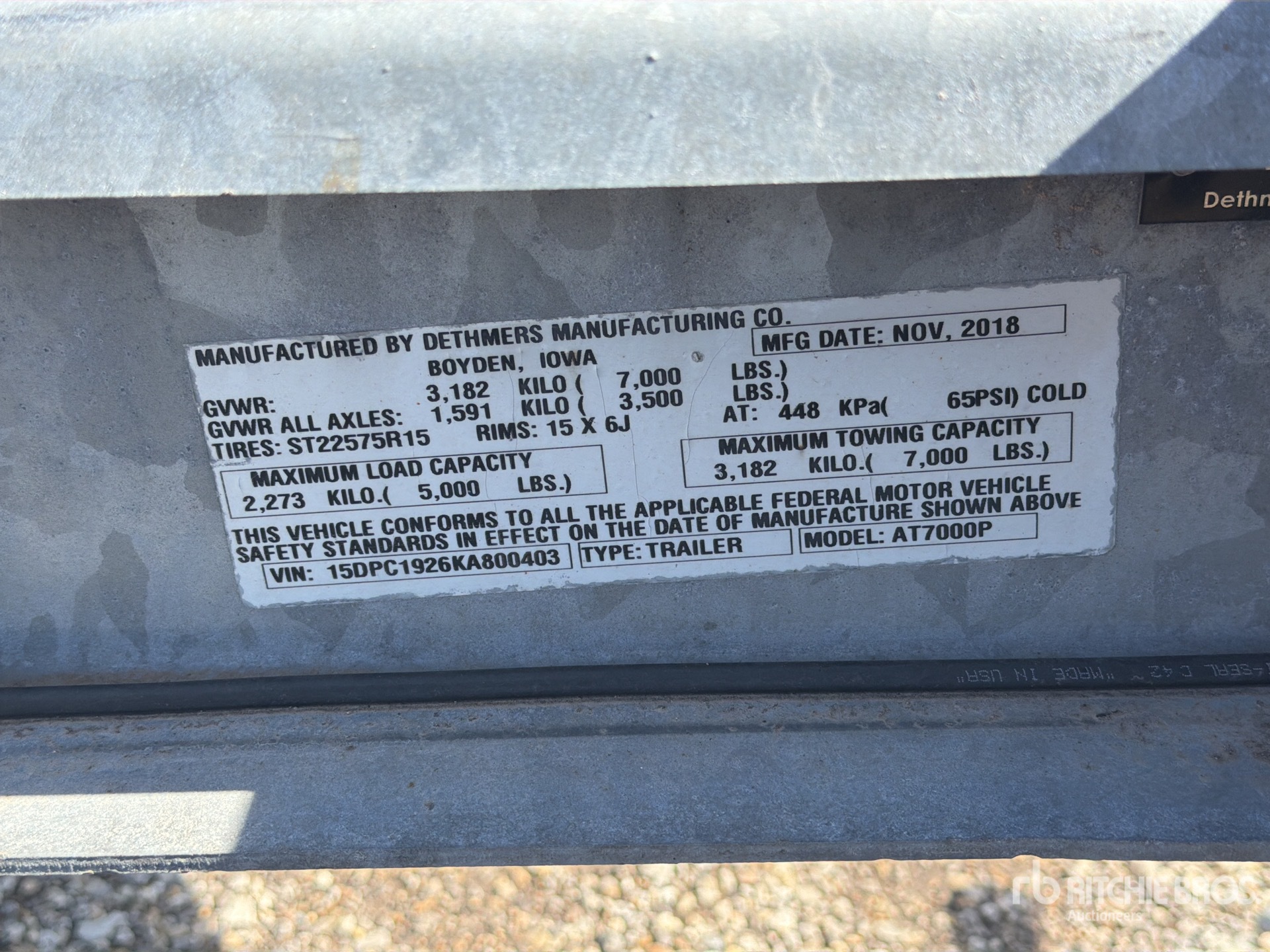 Galvanized Frame Ball Hitch, Torsion Axle, Surge Brakes, Soft Ties, 225/75R15 Tires, 7000 lb GVWR