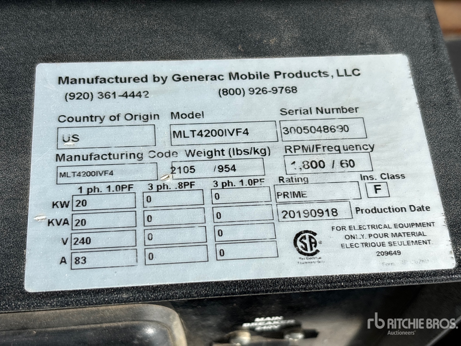 2018 US EPA Label, Isuzu BZ-4LE2T 4 Cylinder 30 kW Diesel Engine, 4 Lamps, Electric Winch Raise and Lower, Lunette Ring Carrier Trailer, Digital Panel