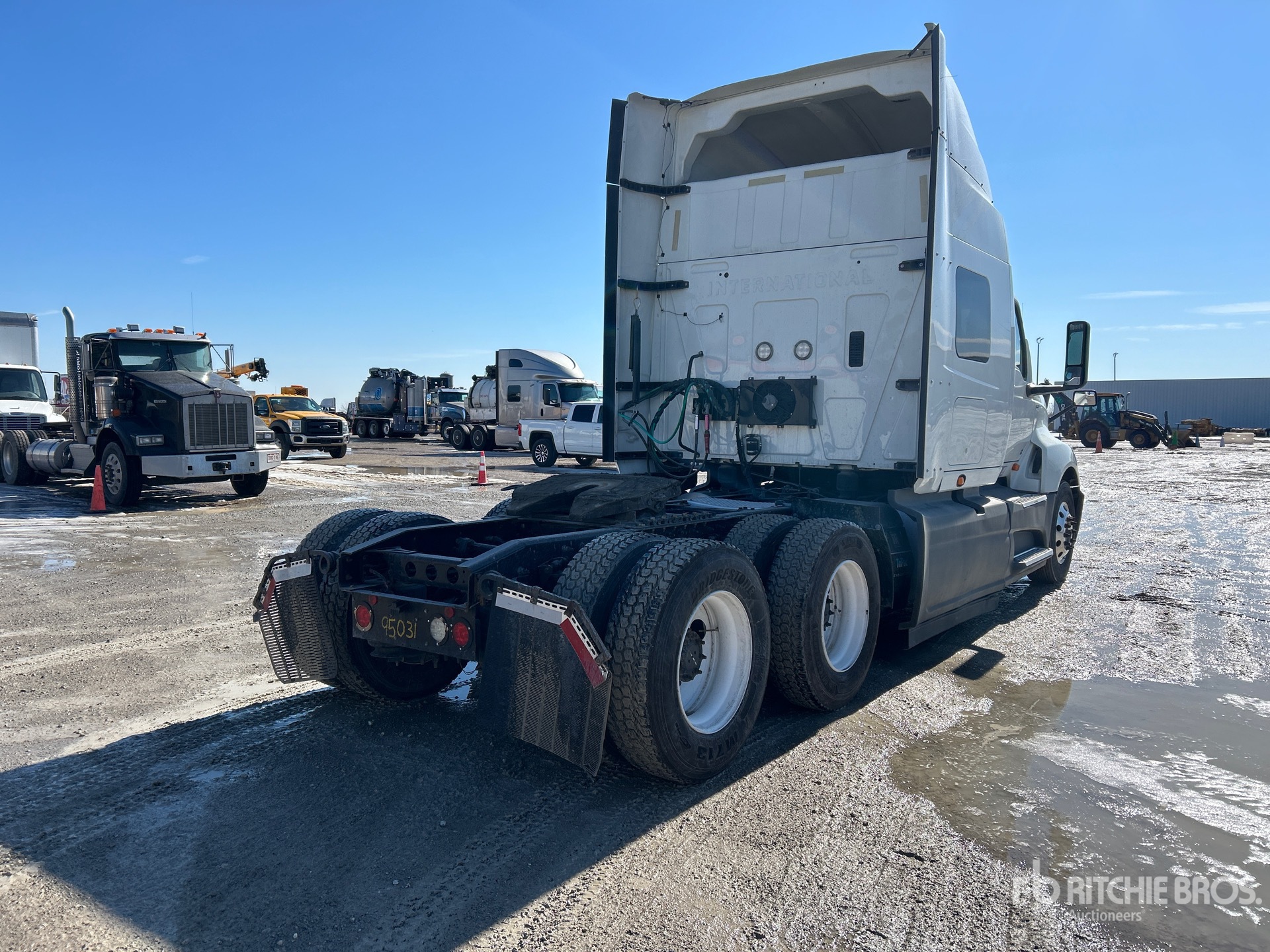 Located in Lane 38 Spot 17, Cummins X15 450 hp Engine, US EPA Label, 17949 Engine hrs, Automated Transmission, 12350 lb Front Axle, 40000 lb Rears, 52350 lb GVWR, 56 in High Rise Sleeper Cab, Bunk Beds, Auxiliary Power Unit, 224 in Wheelbase, Air Suspension, Aluminum Outer Wheels, 295/75R22.5, Air Sliding 5th Wheel, Dual Fuel Tanks