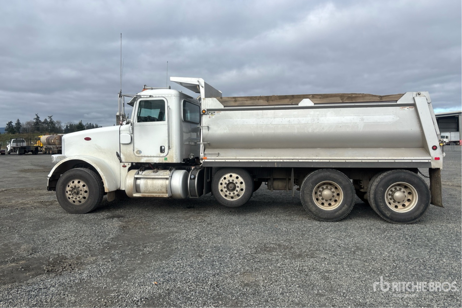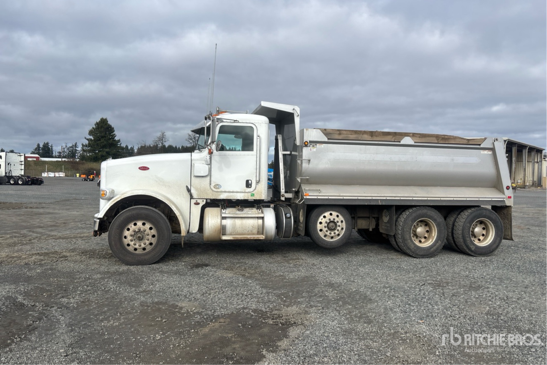 Located in Lane 8 Spot 16, Cummins X15 6 Cylinder 15 L Diesel 500 hp Engine, 2018 US EPA Label, Requires Diesel Exhaust Fluid, 14346 Engine hrs, Engine Brake, Automatic Transmission, Double Differential Locks, 14600 lb Front Axle, 40000 lb Rears, 65620 lb GVWR, Air Ride Cab, Aluminum Wheels, 12R22.5, Steerable Air Lift Pusher Axle, Air Trac Air Ride Suspension, 246 in Wheelbase, PTO, Columbia 15 ft 6 in Long x 4 ft High Steel Body, 16 cyd, Capacity, Round Bottom, Rear Hydraulics
