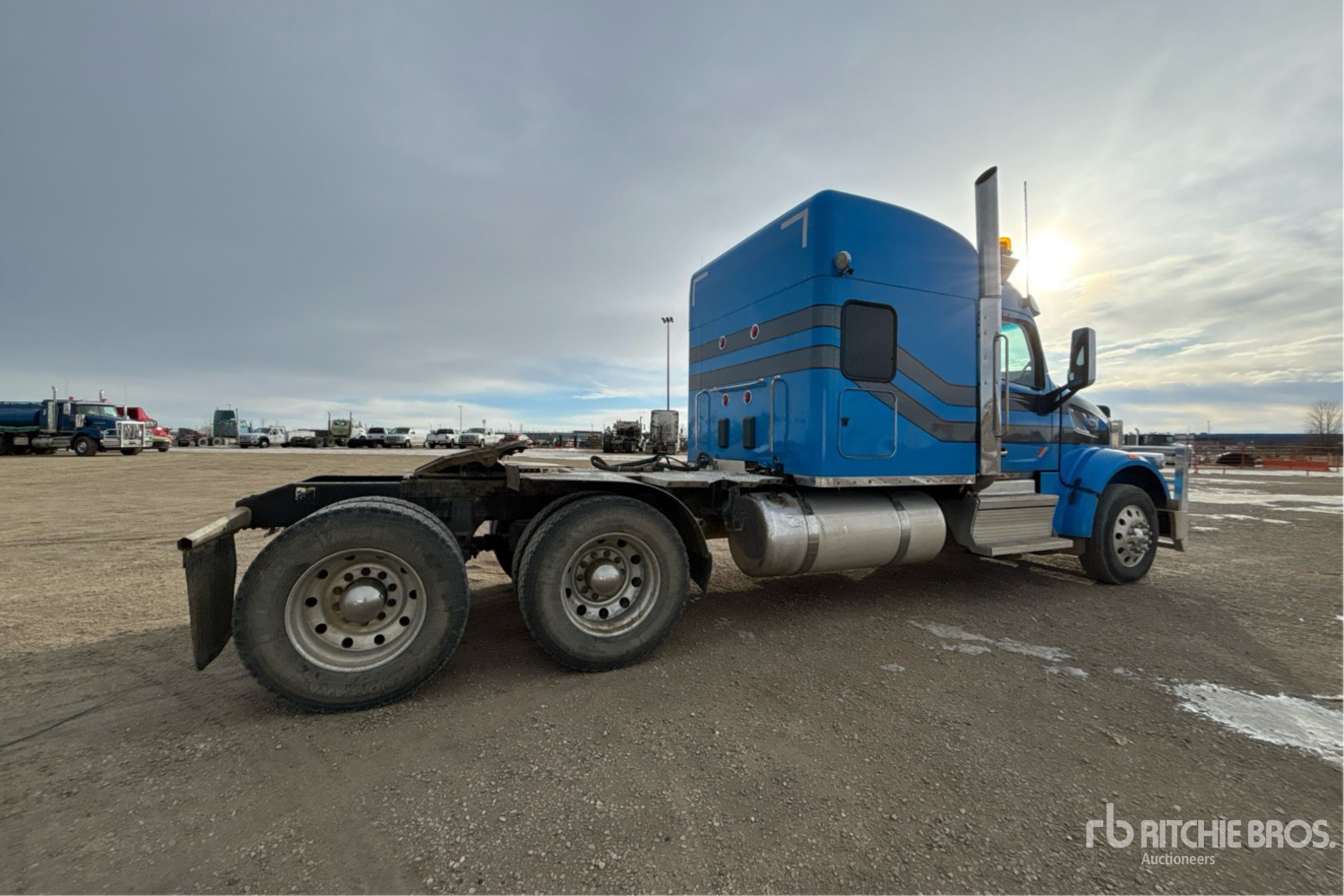 Located in Lane 34 Spot 18, Cummins X15 565 hp Engine, Engine Coolant Heater, Positive Air Shutoff, 2018 US EPA Label, 16685 Engine hrs, Eaton Fuller 18-Speed Manual Transmission, 12000 lb Front Axle, 38000 lb Rears, 50000 lb GVWR, Engine Brake, Double Differential Locks, 63 in Mid Roof Sleeper Cab, Bunk Heater, 250 in Wheelbase, Air Suspension, Aluminum Wheels, 11R24.5, Air Sliding 5th Wheel, Dual Fuel Tanks