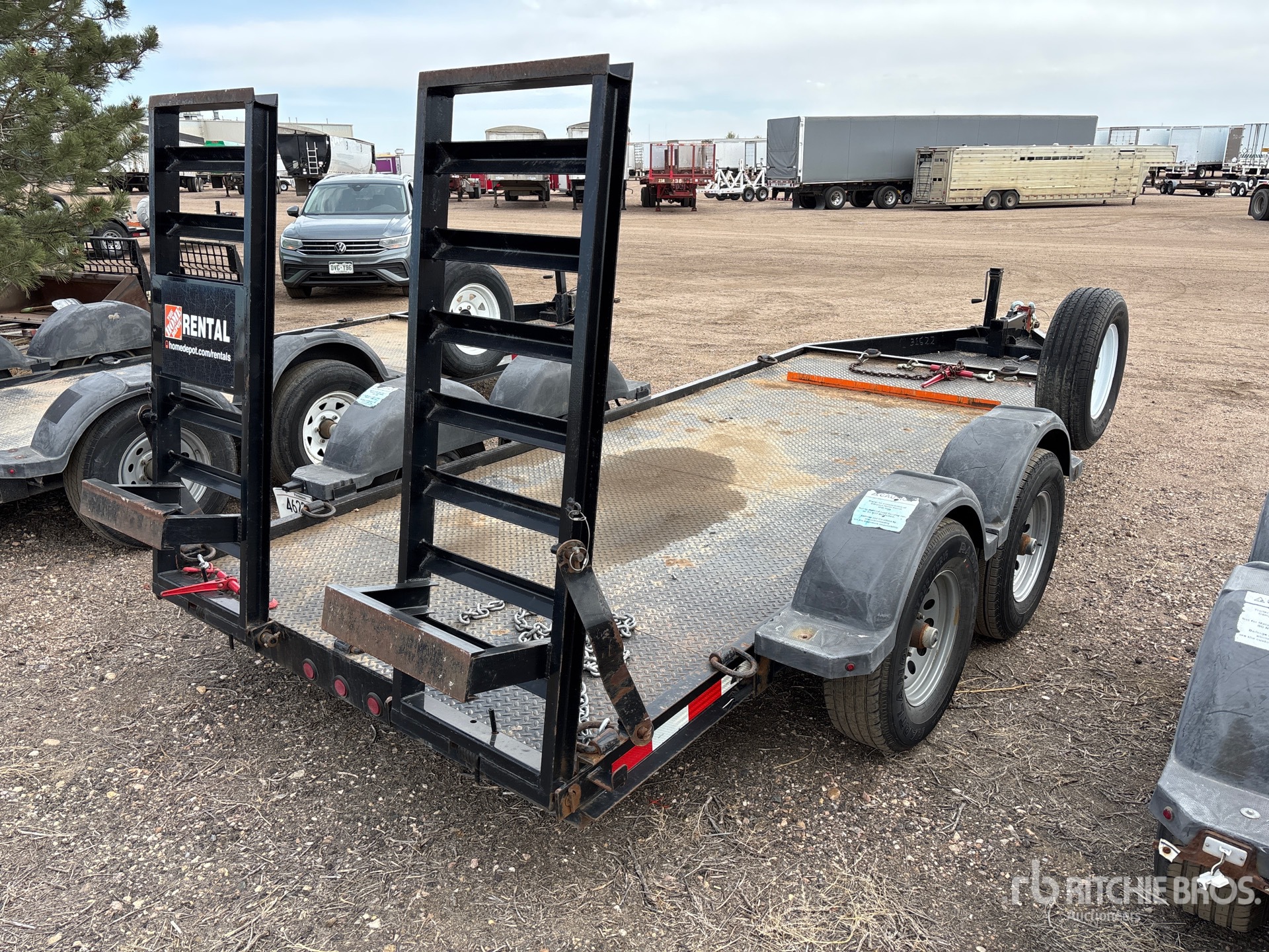 Ball Hitch, Torsion Axle, Surge Brakes, 14 ft Main Deck, 70 in Usable Deck Width, Manual Ramps, Steel Decking, 225/75R15 Tires, 9900 lb GVWR