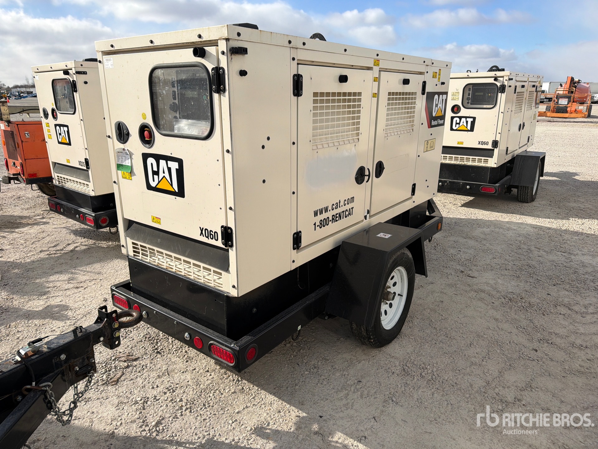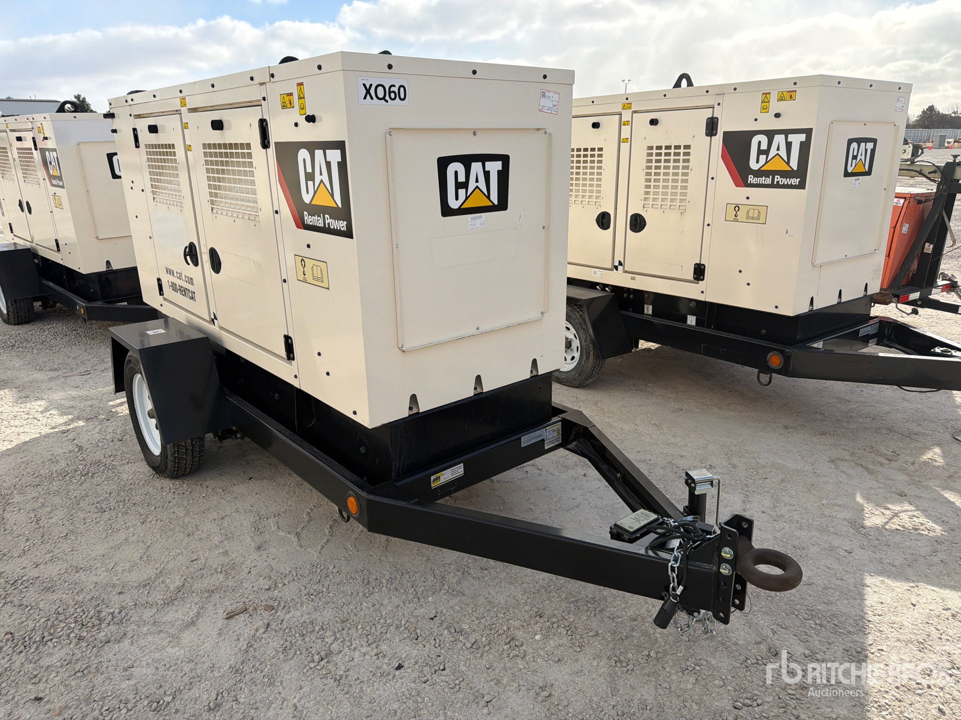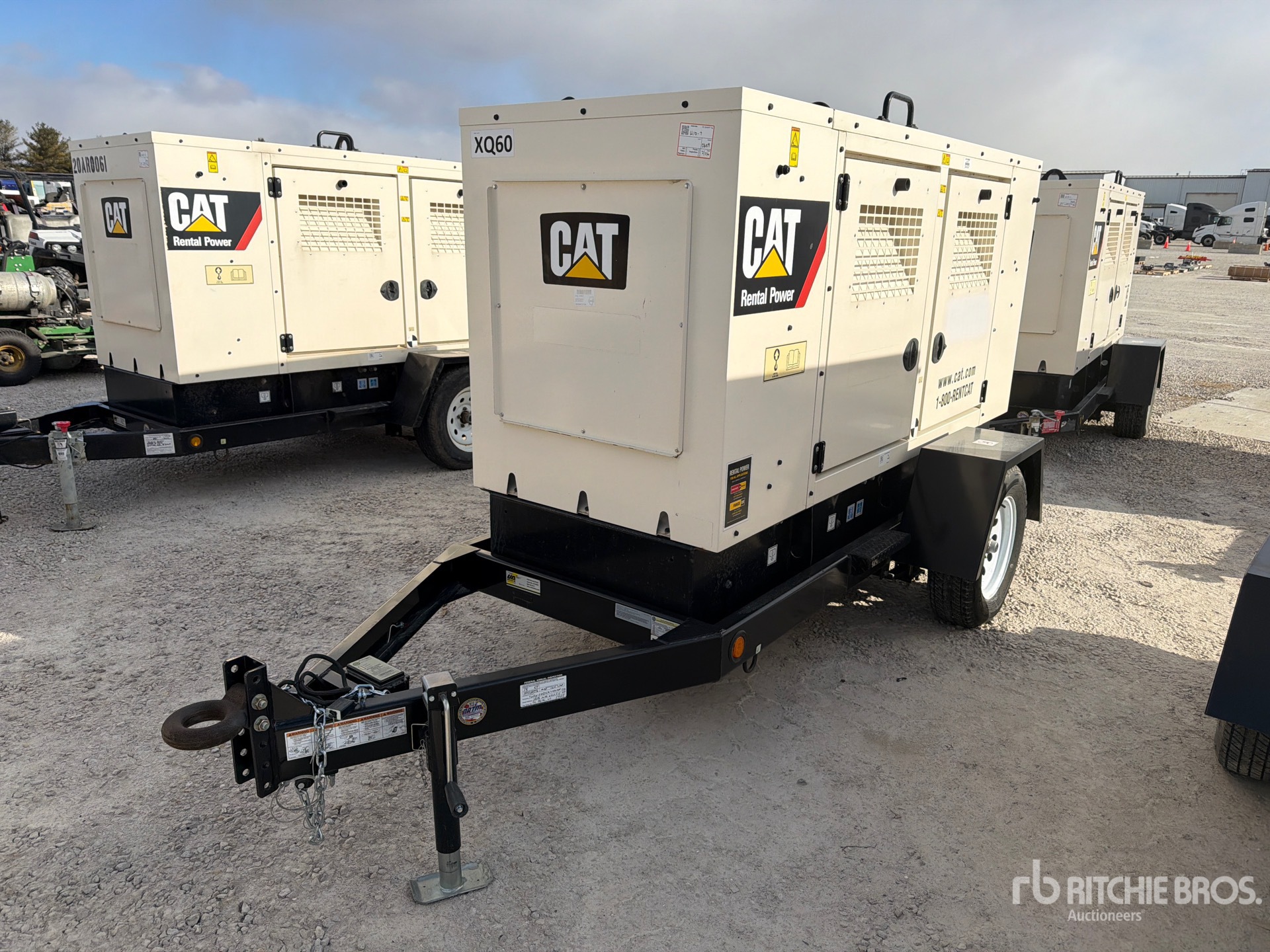 Cat Diesel Engine, 59.4 kVA/ Rated 3 Phase Output, Lunette Ring Carrier Trailer, Surge Brakes