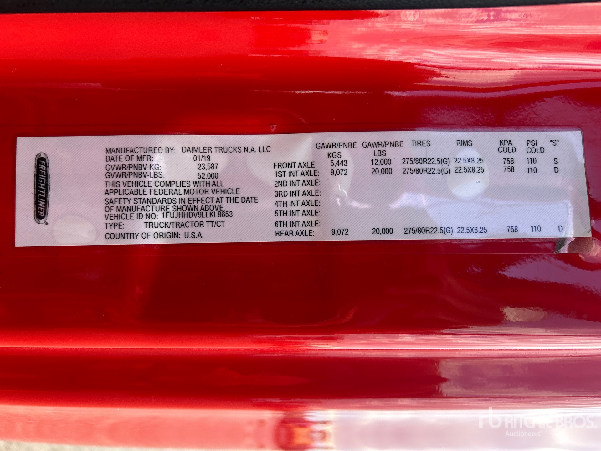 Detroit DD13 435 hp Engine, 2019 US EPA Label, 20489 Engine hrs, Eaton Fuller FRW-15210B 10-Speed Manual Transmission, 12000 lb Front Axle, 40000 lb Rears, 52000 lb GVWR, Engine Brake, 60 in High Rise Sleeper Cab, Bunk Beds, 235 in Wheelbase, Air Suspension, Aluminum Wheels, Dual Fuel Tanks