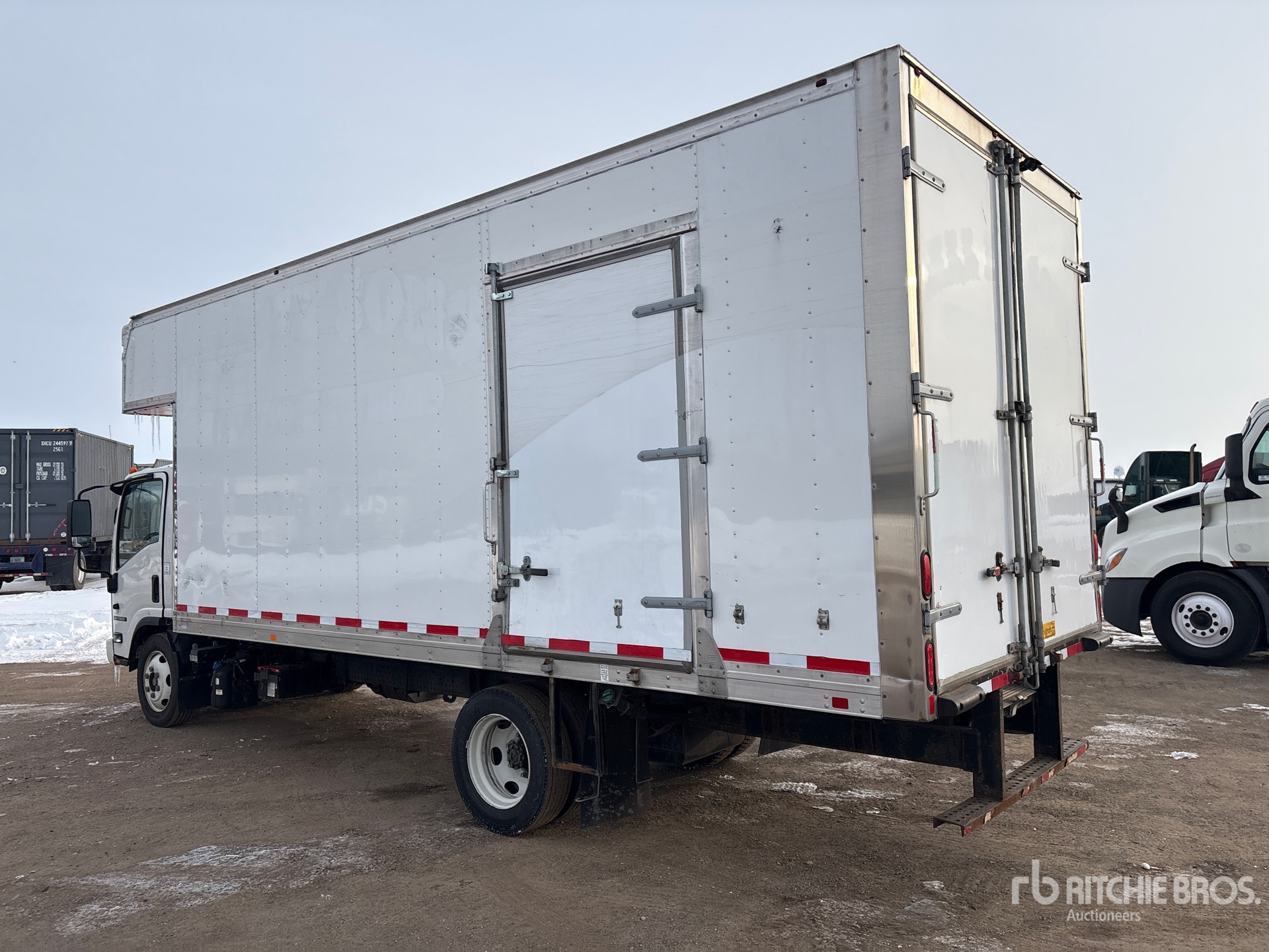 Isuzu 4HK1TC 4 Cylinder 317 cid Diesel 210 hp Engine, 2020 US EPA Label, 2669 Engine hrs, Automatic Transmission, 7275 lb Front Axle, 13660 lb Rears, 19500 lb GVWR, 225/70R19.5, Spring Suspension, 158 in Wheelbase, Supreme 20 ft x 96 in Wide x 97 in High Body, Walk-Up Ramp
