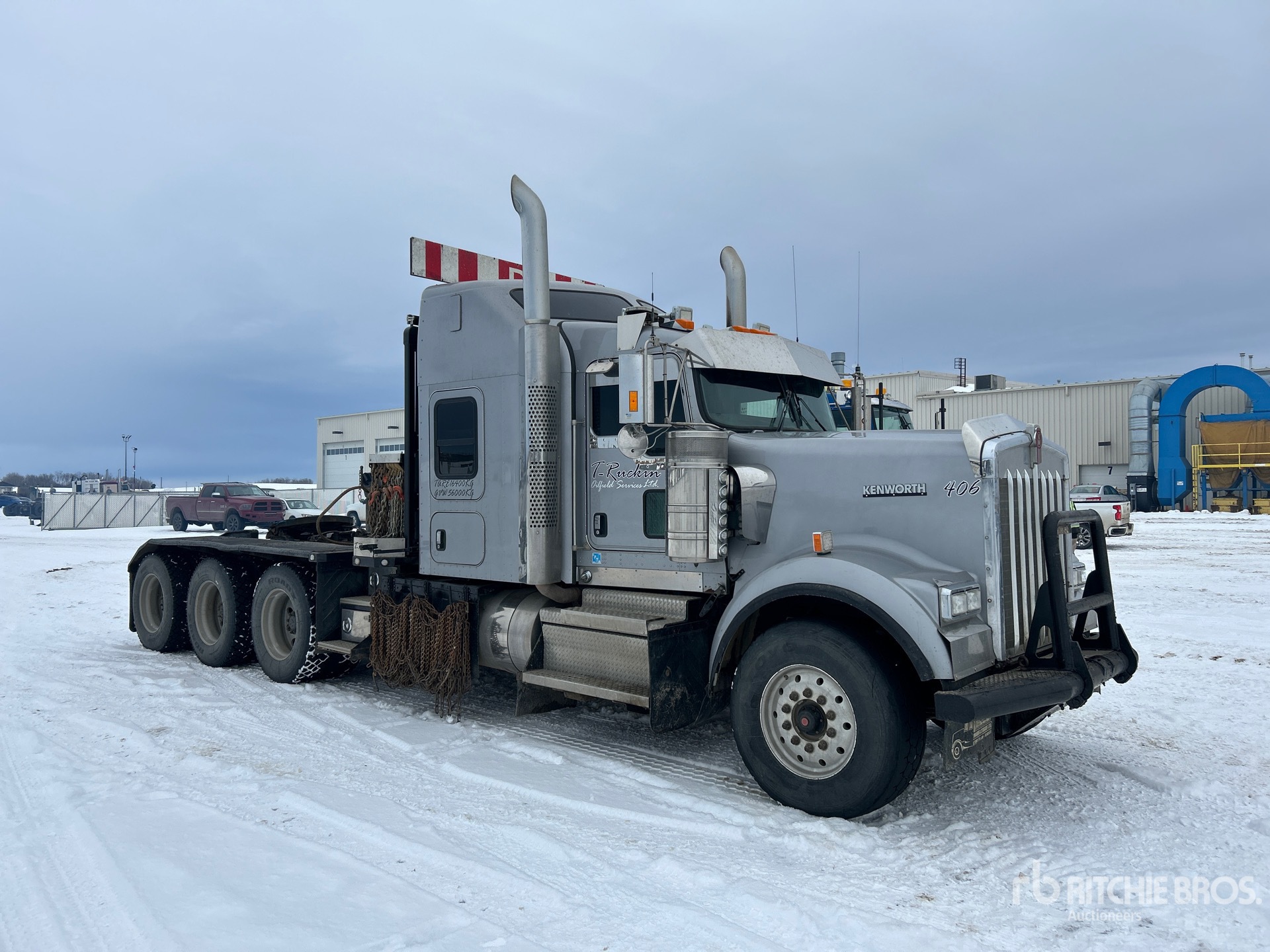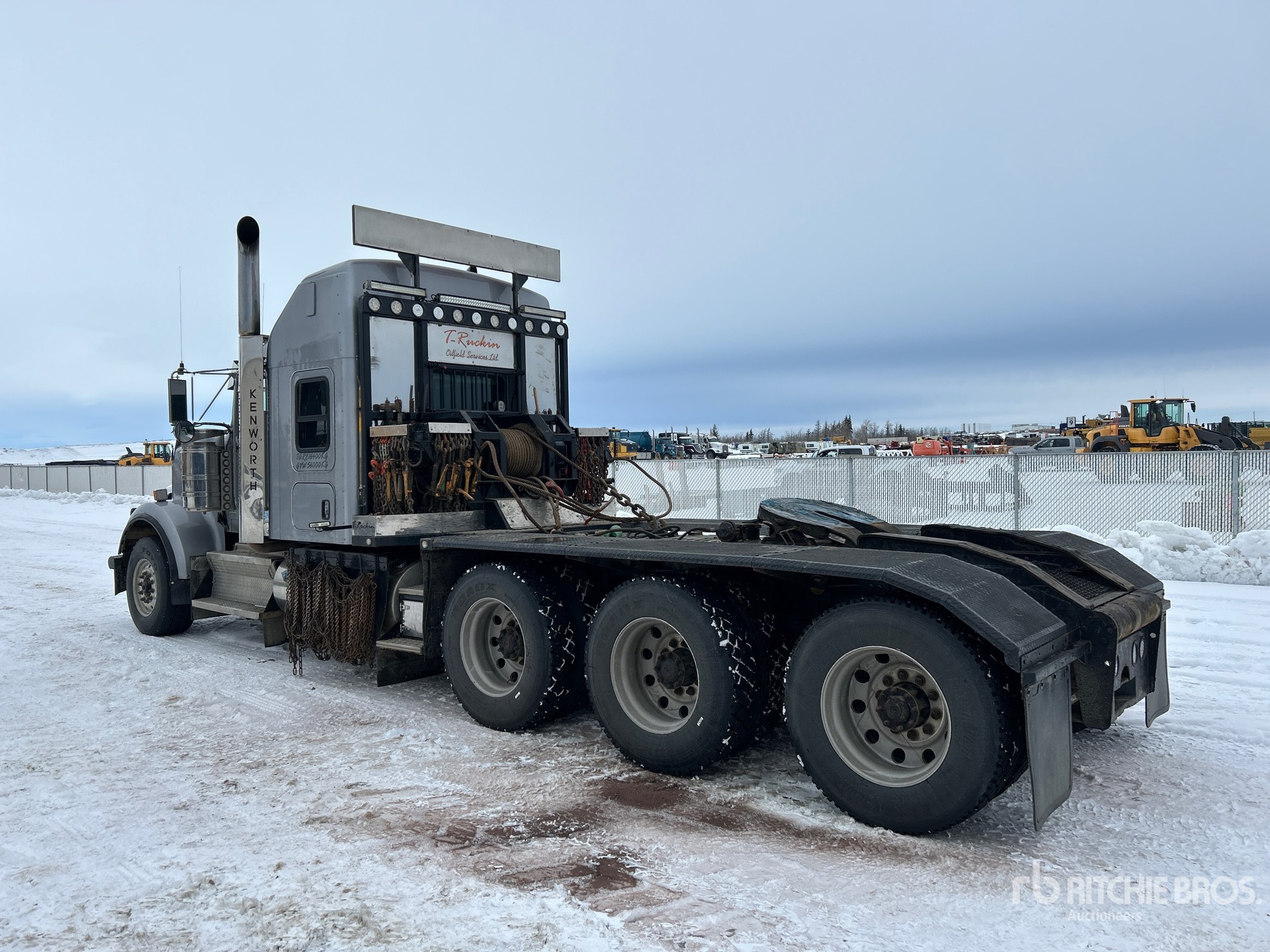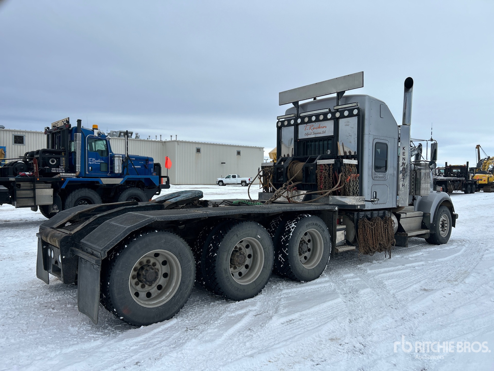 Cummins X15 6 Cylinder Diesel 565 hp Engine, 2017 US EPA Label, CARB Compliant, Engine Coolant Heater, Positive Air Shutoff, 18138 Engine hrs, Engine Brake, Eaton Fuller RTLO-18918B 18-Speed Manual Transmission, Triple Differential Locks, 7258 kg Front Axle, 24948 kg Rears, Meritor RZ-XX-166P Drive Axles, 4.1:1 Axle Ratio, 32206 kg GVWR, Air Ride Cab, 50 in High Rise Sleeper Cab, Aluminum Wheels, 385/65R22.5 Front Tires, 11R24.5 Rear Tires, Double Frame, Neway Air Ride Suspension, 286 in Wheelbase, PTO, Live Roll, Tulsa Rufnek Hydraulic Winch, Lowboy Ramps, Complete-Dispersal-for-T-Ruckin-Oilfield-Services-Ltd