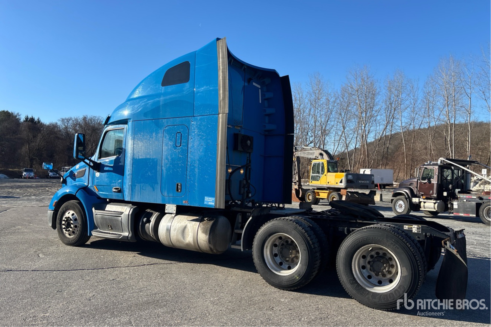 Located in Lane 1 Spot 9, Paccar MX-13 455 hp Engine, 2019 US EPA Label, 13478 Engine hrs, Paccar Automated Transmission, 12000 lb Front Axle, 38000 lb Rears, 50000 lb GVWR, Engine Brake, 80 in High Rise Sleeper Cab, Bunk Beds, Bunk Heater, Auxiliary Power Unit, Sleeper Air Conditioner, 230 in Wheelbase, Air Suspension, Aluminum Outer Wheels, 295/75R22.5, Air Sliding 5th Wheel, Dual Fuel Tanks
