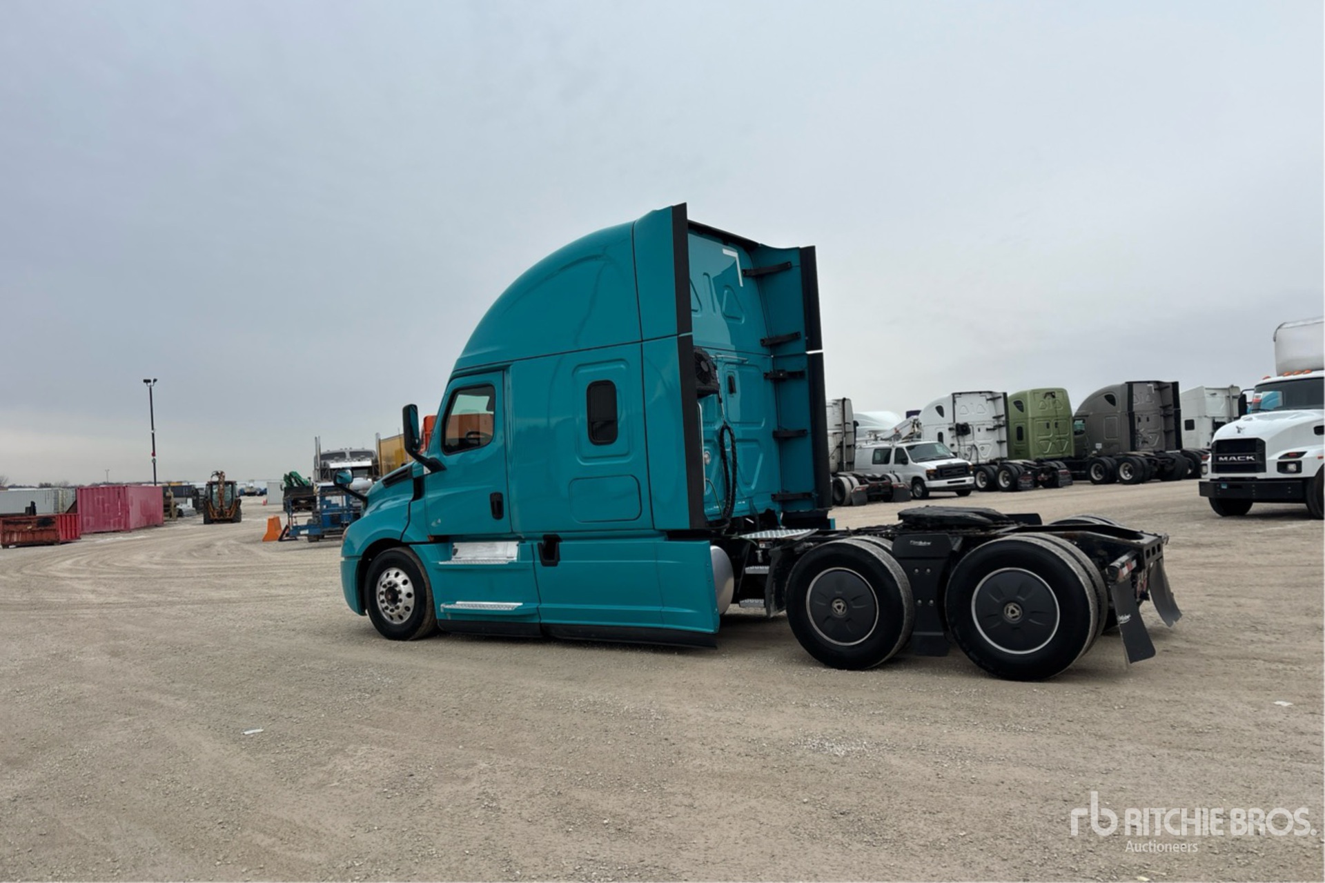 Detroit DD15 400 hp Engine, 24583.54 Engine hrs, Detroit DT12-1650-OH1 12-Speed Automated Transmission, 12350 lb Front Axle, 40000 lb Rears, 52350 lb GVWR, Engine Brake, 70 in High Rise Sleeper Cab, Bunk Beds, 229 in Wheelbase, Air Suspension, Aluminum Front Wheels, 295/75R22.5, Air Sliding 5th Wheel, Dual Fuel Tanks