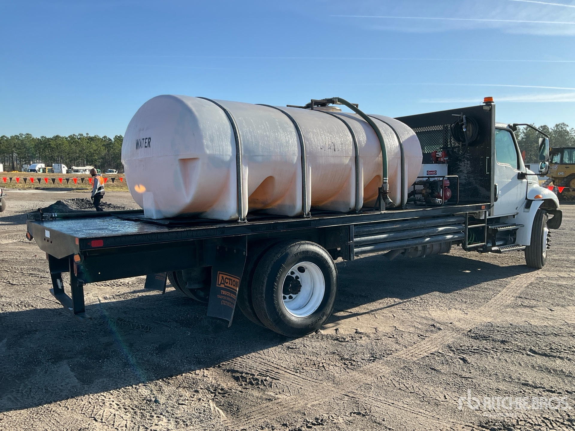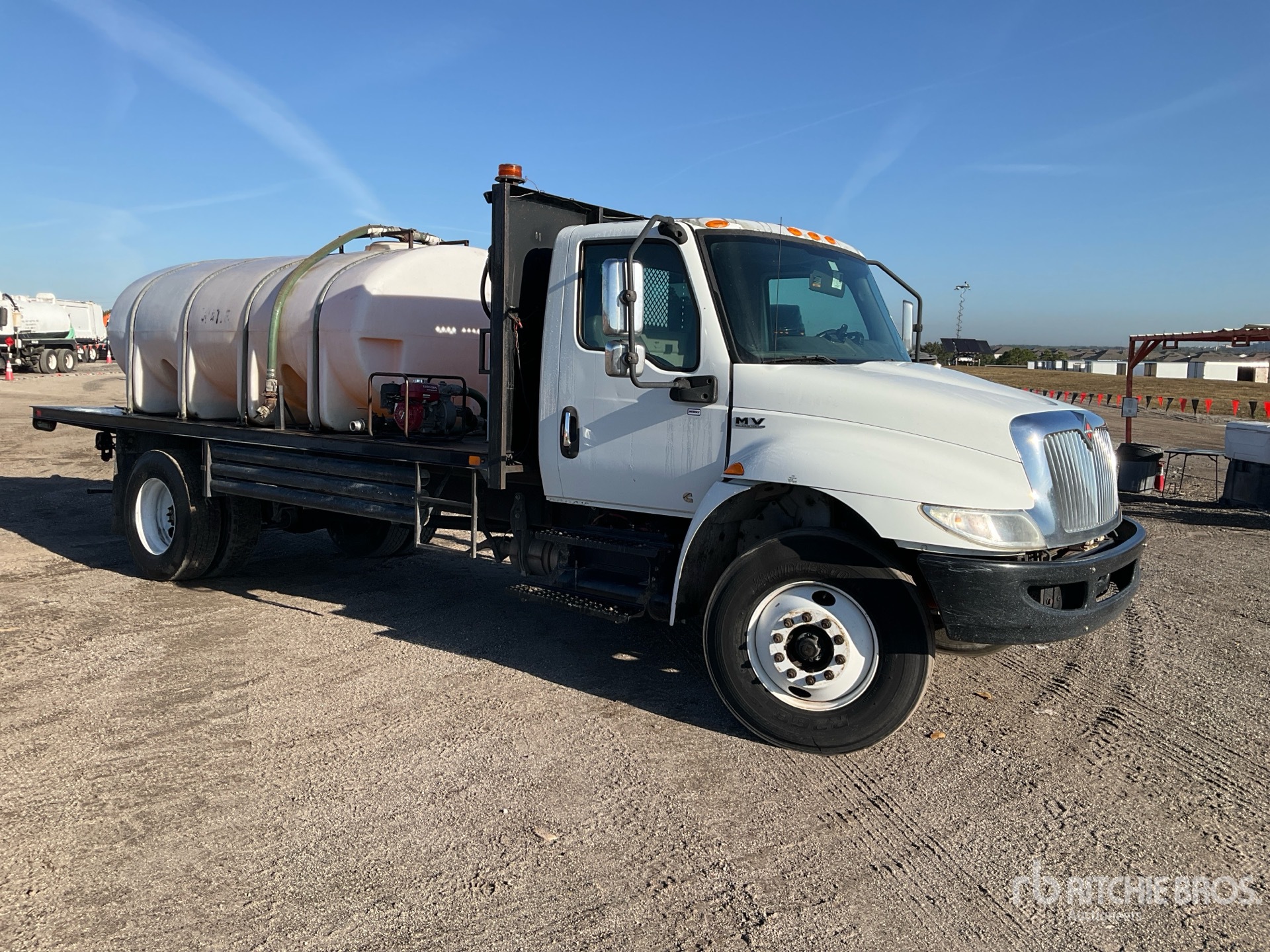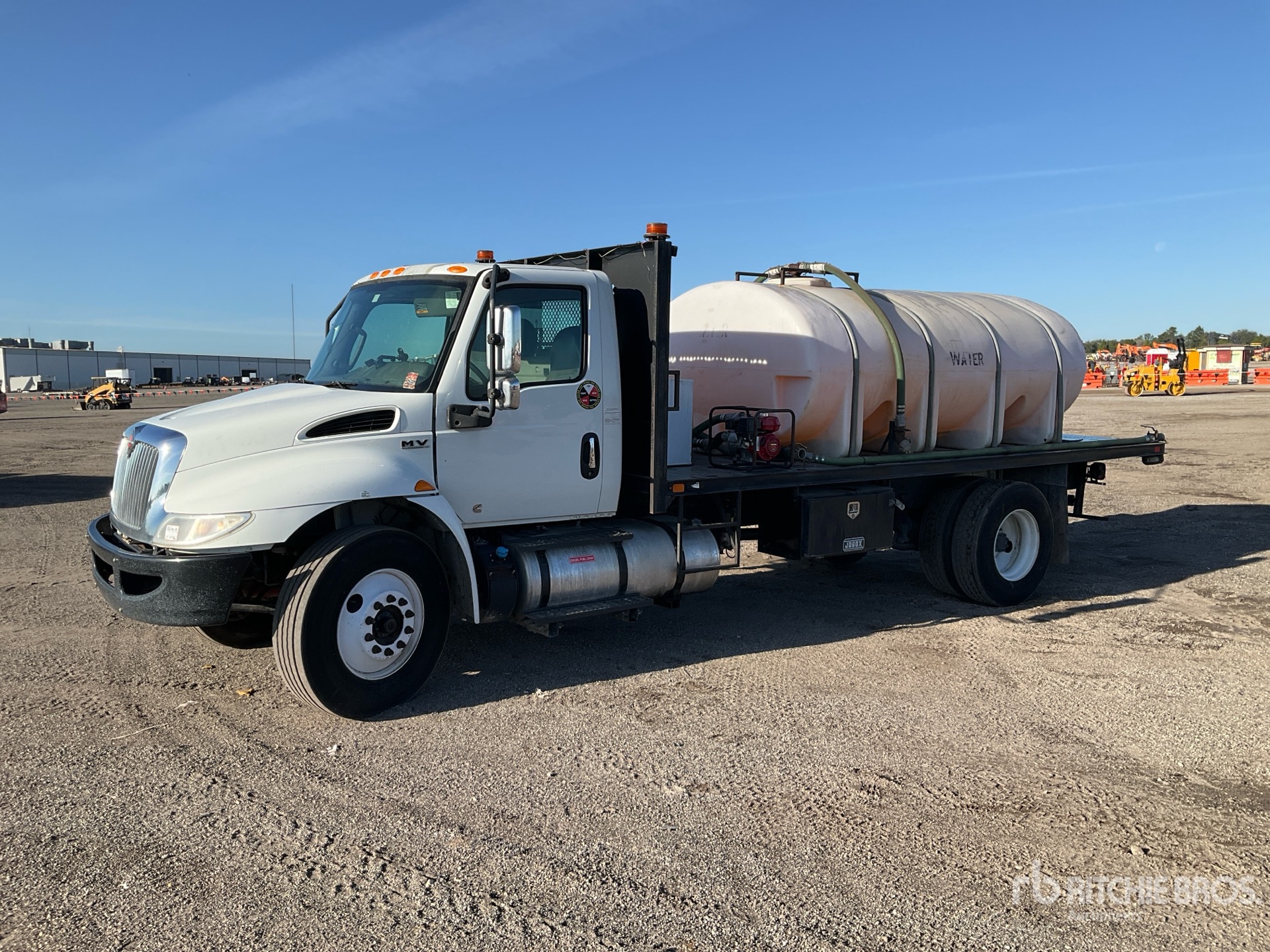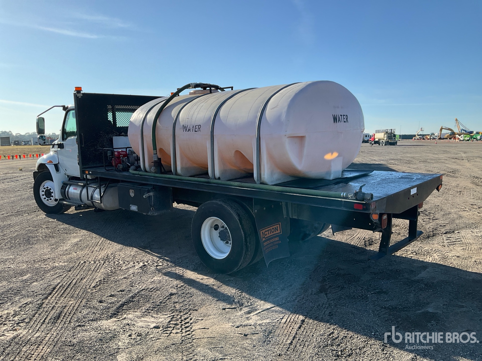 Located in Lane 50 Spot 9, Cummins B6.7 6 Cylinder 6.7 L Diesel 240 hp Engine, 2020 US EPA Label, Requires Diesel Exhaust Fluid, 8054 Engine hrs, Allison 2200 6-Speed Automatic Transmission, 10000 lb Front Axle, 17500 lb Rears, 5.29:1 Axle Ratio, 25999 lb GVWR, 11R22.5, Air Ride Suspension, 217 in Wheelbase, 16 ft x 94 in Bed, Better built 100 gal Fuel Tank /w Pump, 2000 Gal Poly Tank, Honda Water Pump
