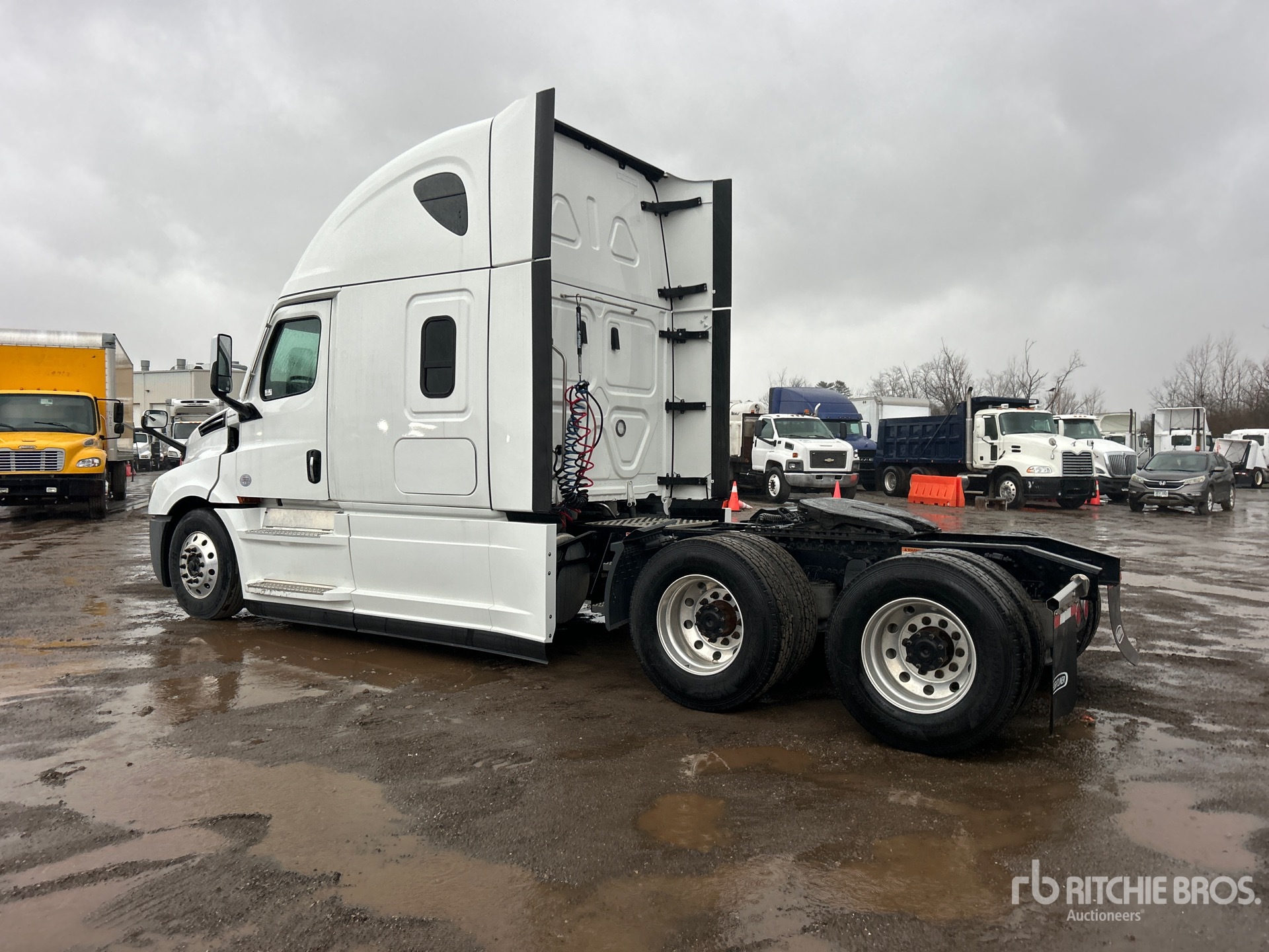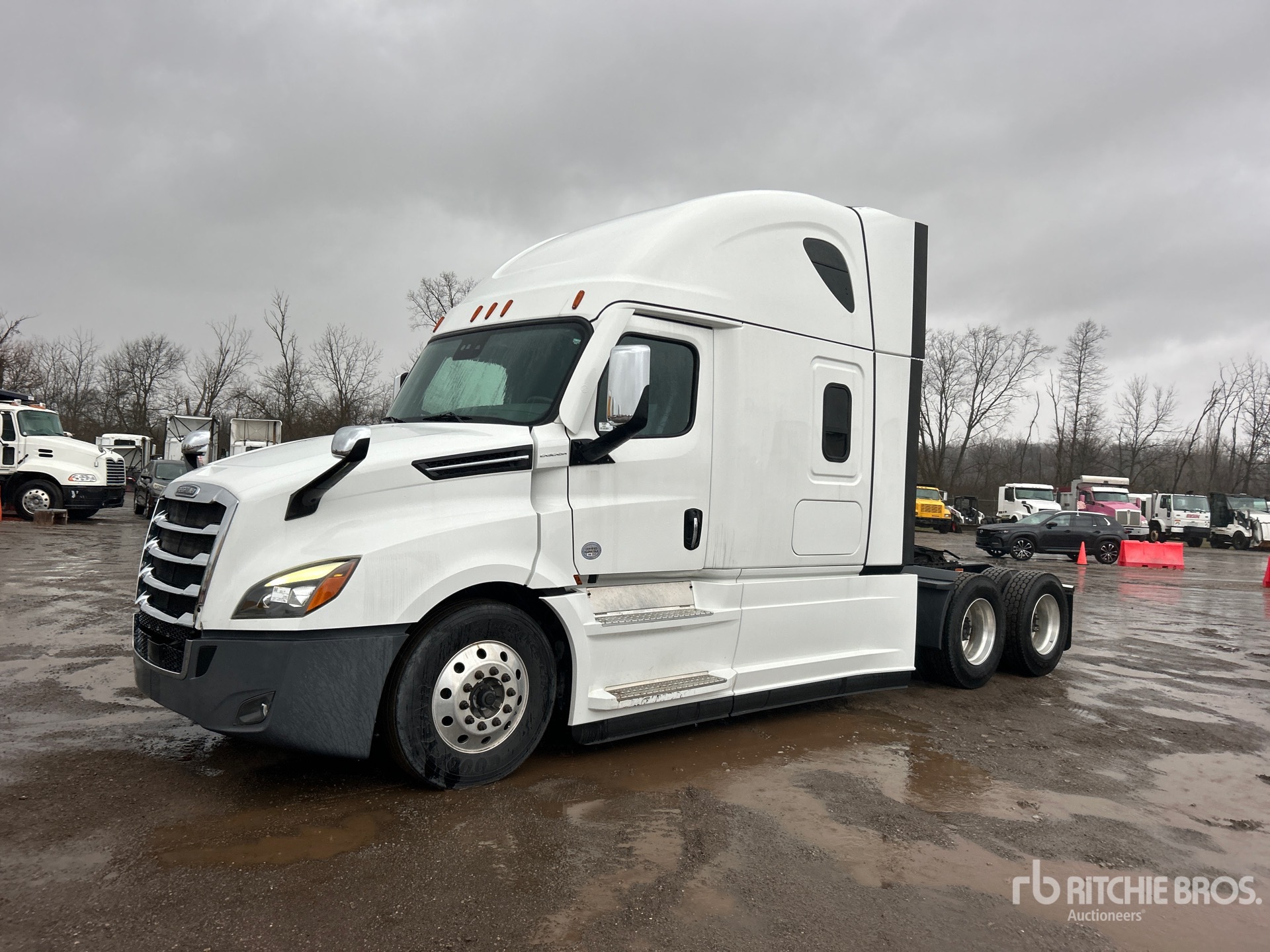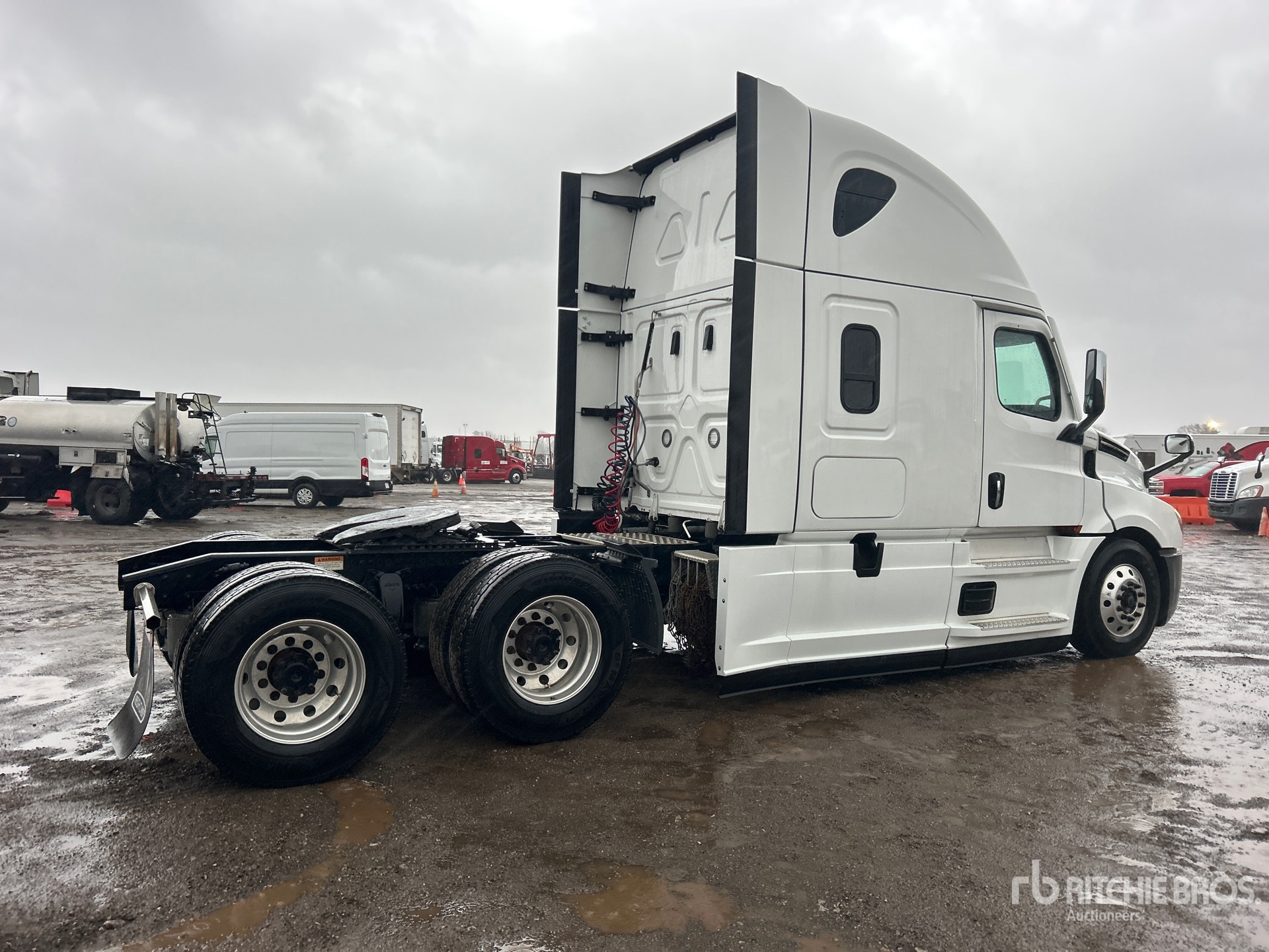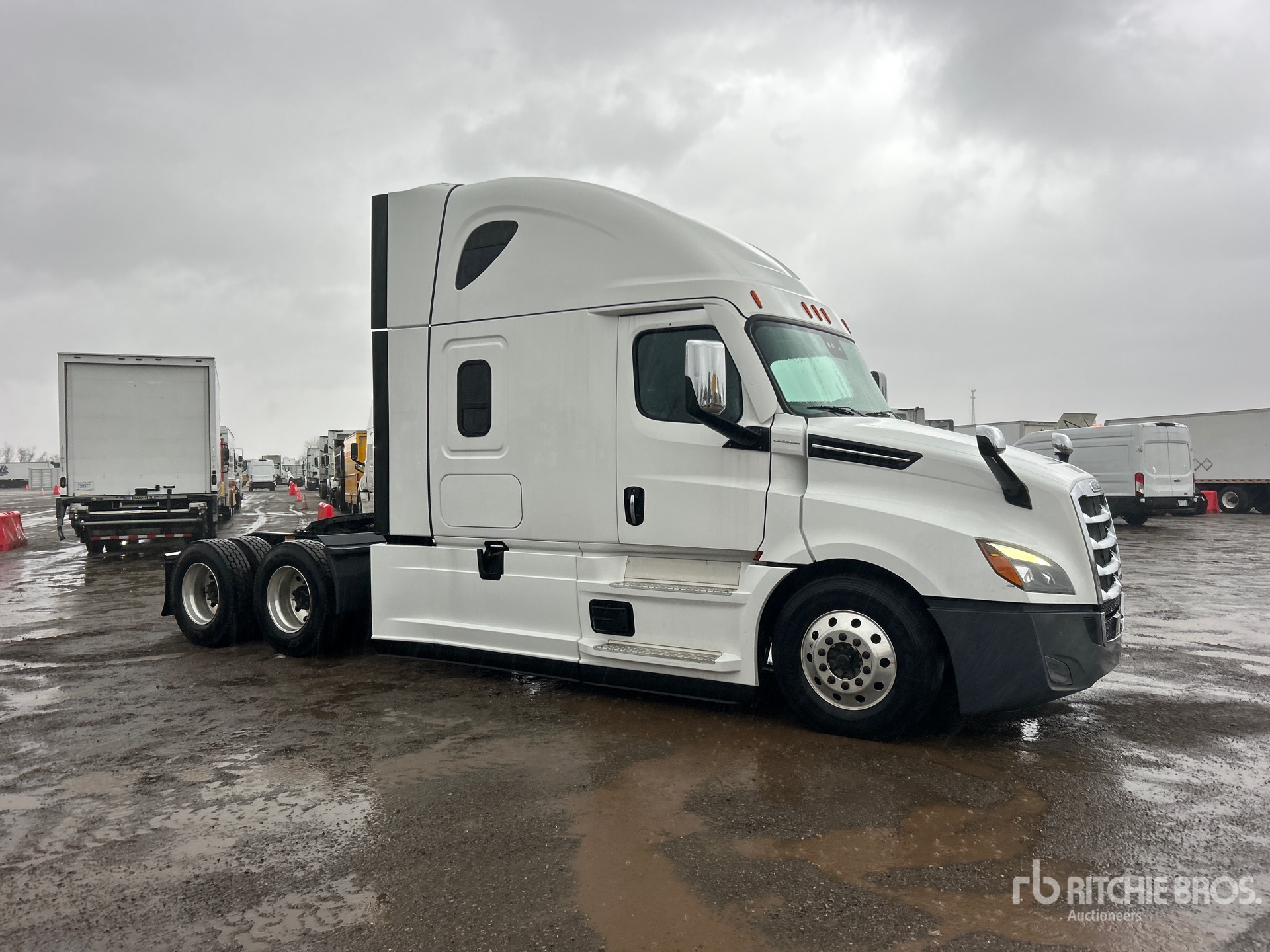 Detroit DD15 475 hp Engine, 2021 US EPA Label, 6379 Engine hrs, Detroit DT12-1650-OHE 12-Speed Automated Transmission, 12350 lb Front Axle, 40000 lb Rears, 52350 lb GVWR, Engine Brake, 70 in High Rise Sleeper Cab, Bunk Beds, 227 in Wheelbase, Air Suspension, Aluminum Wheels, 295/75R22.5, Air Sliding 5th Wheel, Dual Fuel Tanks