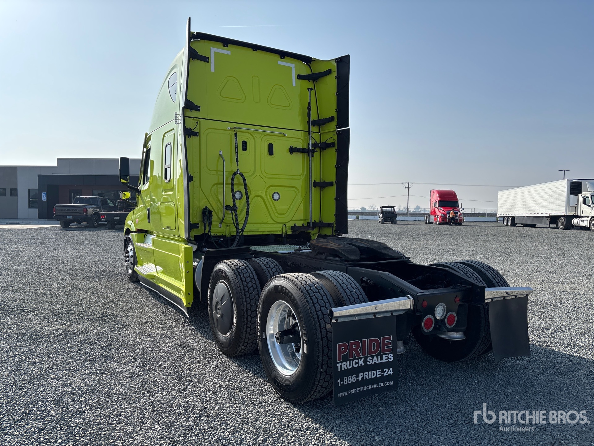 Detroit DD15 505 hp Engine, 2022 US EPA Label, 15446 Engine hrs, Detroit DT12-1650-OHE 12-Speed Automated Transmission, 13300 lb Front Axle, 40000 lb Rears, 53300 lb GVWR, Engine Brake, 72 in High Rise Sleeper Cab, Bunk Beds, 229 in Wheelbase, Air Suspension, Aluminum Outer Wheels, 295/75R22.5, Air Sliding 5th Wheel, Dual Fuel Tanks