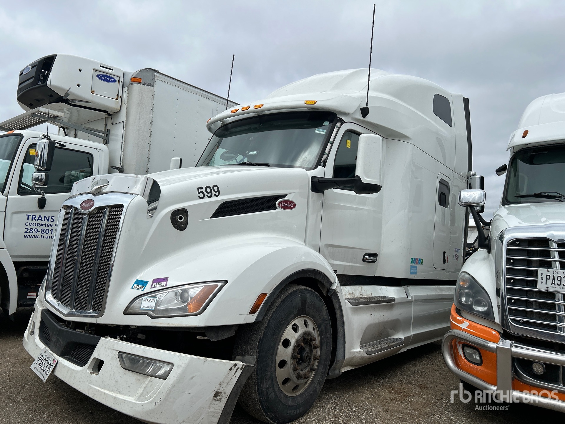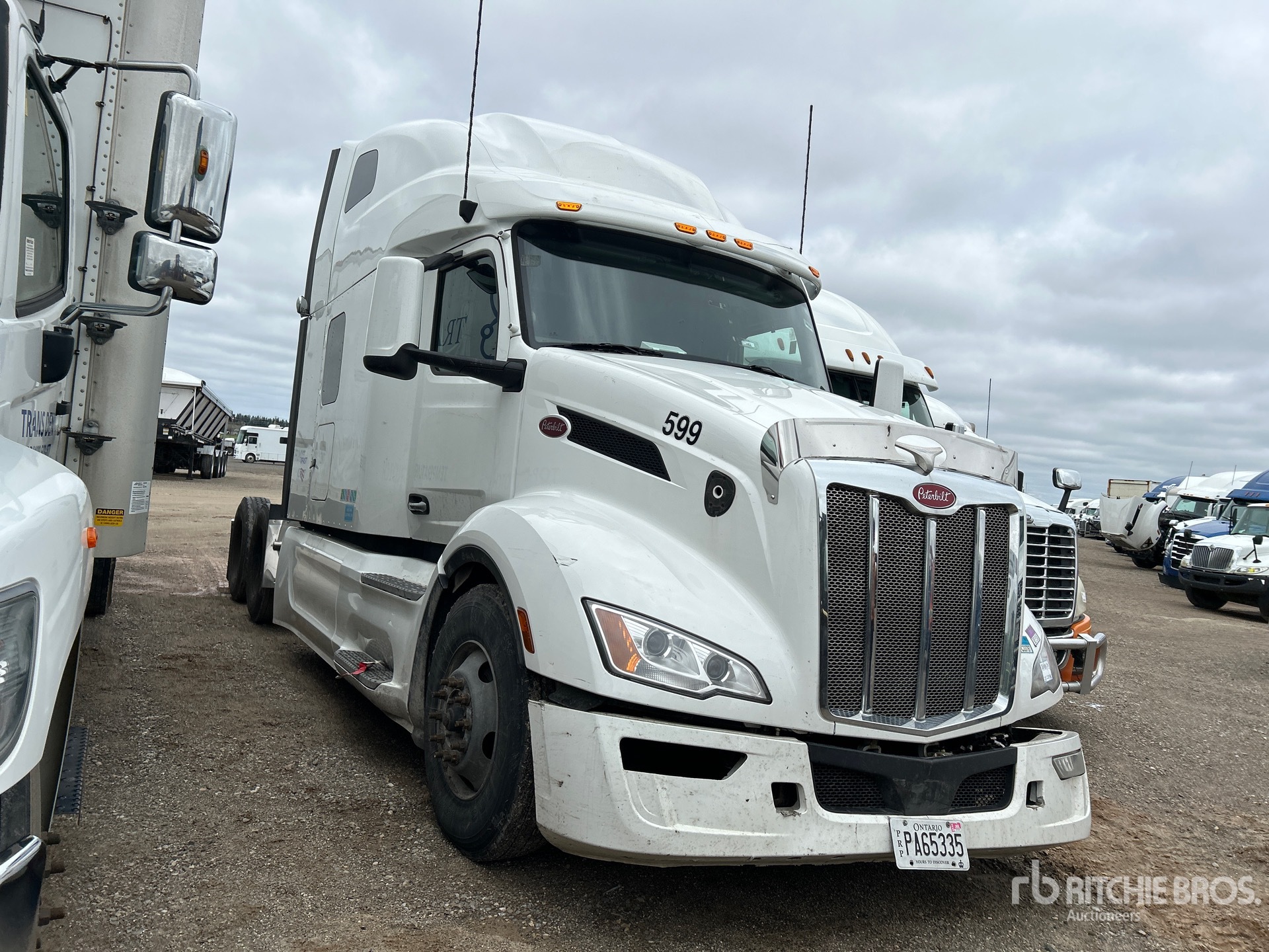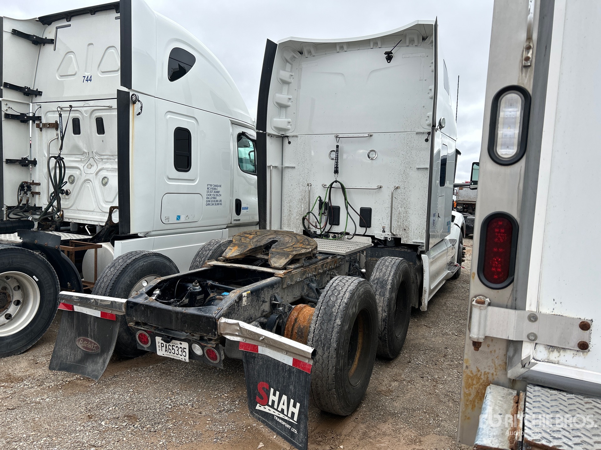 Paccar MX-13 Engine, Automatic Transmission, 13200 lb Front Axle, 40000 lb Rears, 53200 lb GVWR, Engine Brake, Double Differential Locks, 70 in High Rise Sleeper Cab, 234 in Wheelbase, Air Suspension, Aluminum Wheels, 11R22.5, Air Sliding 5th Wheel, Dual Fuel Tanks