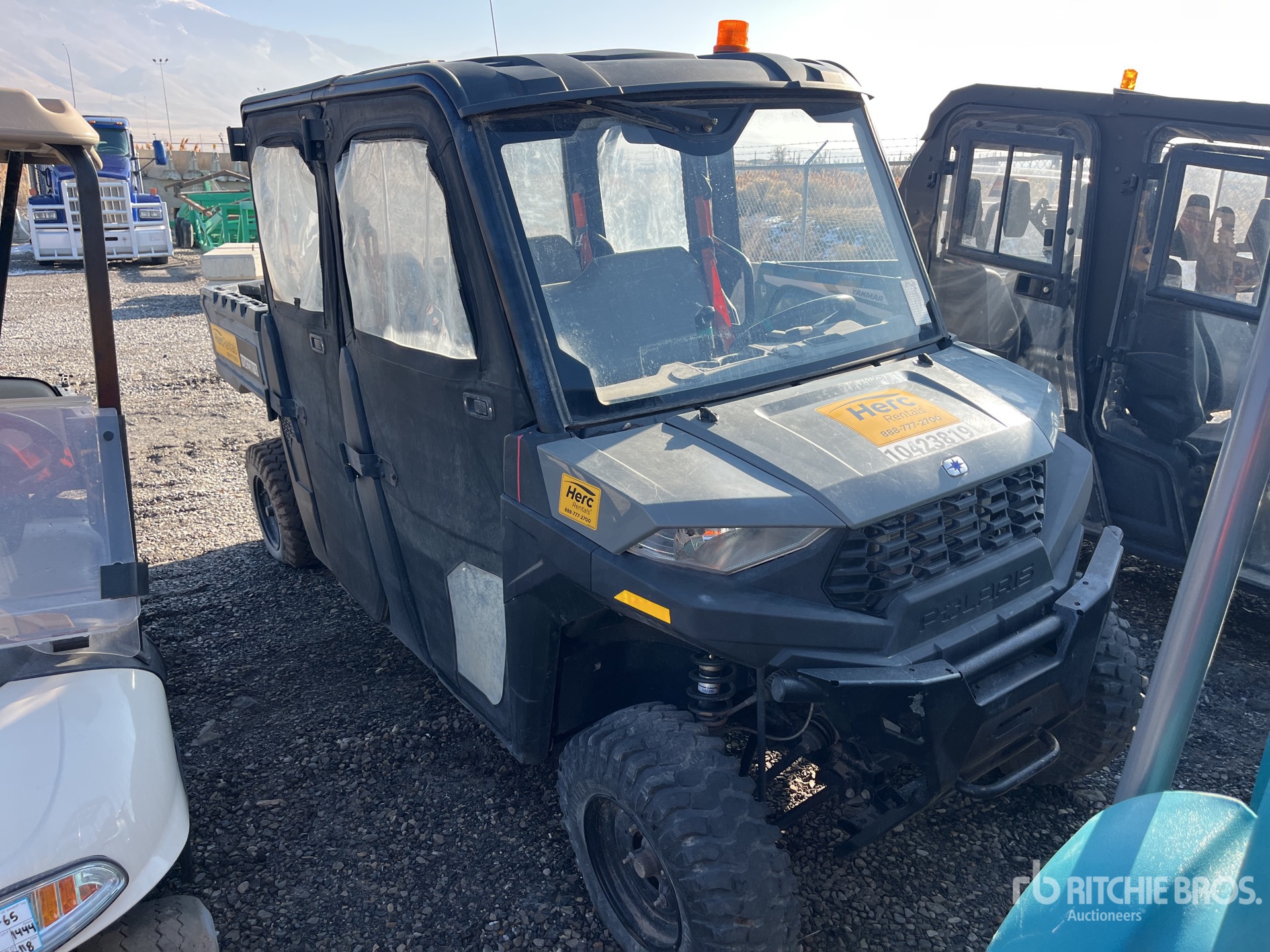 Enclosed Cab, 4 Passenger, Windshield, Rear Screen, Hitch Receiver, Manual Dump Bed, 2023 US EPA Label, Polaris Gasoline Engine