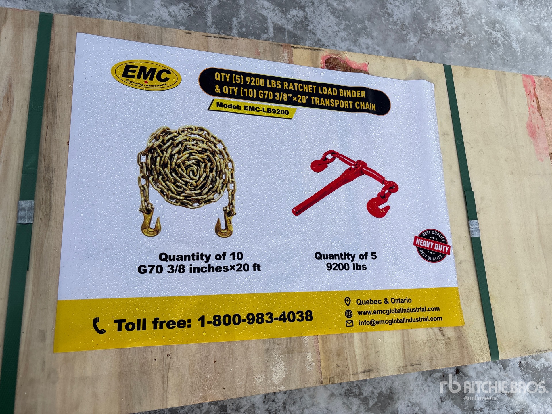 Quantity of (5) 9200 lbs Ratchet Load Binder, Quantity of (10) G70 3/8 in × 20 ft Transport Chain