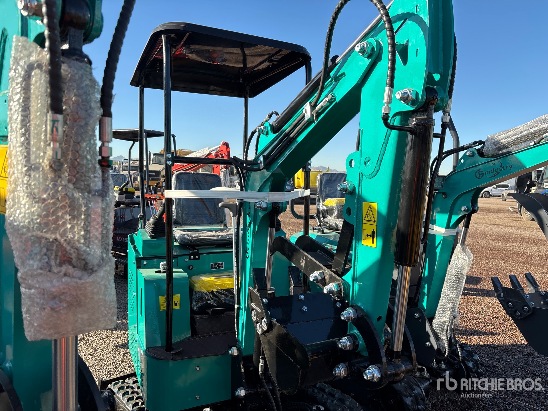 2025 US EPA Label, 2 ft 4 in Stick, Backfill Blade, 7 in Rubber Tracks, 16 in Digging Bucket, Manual Thumb