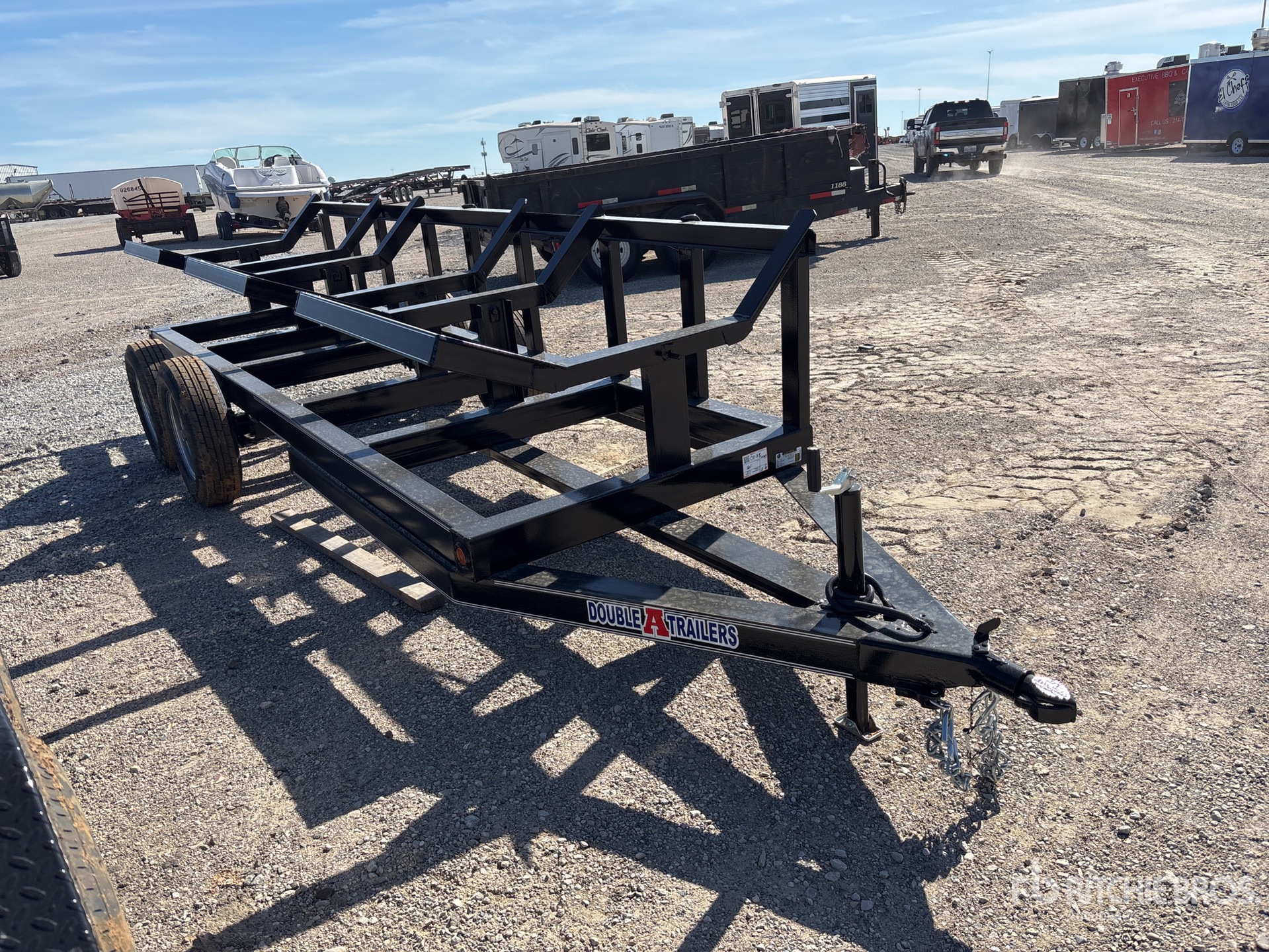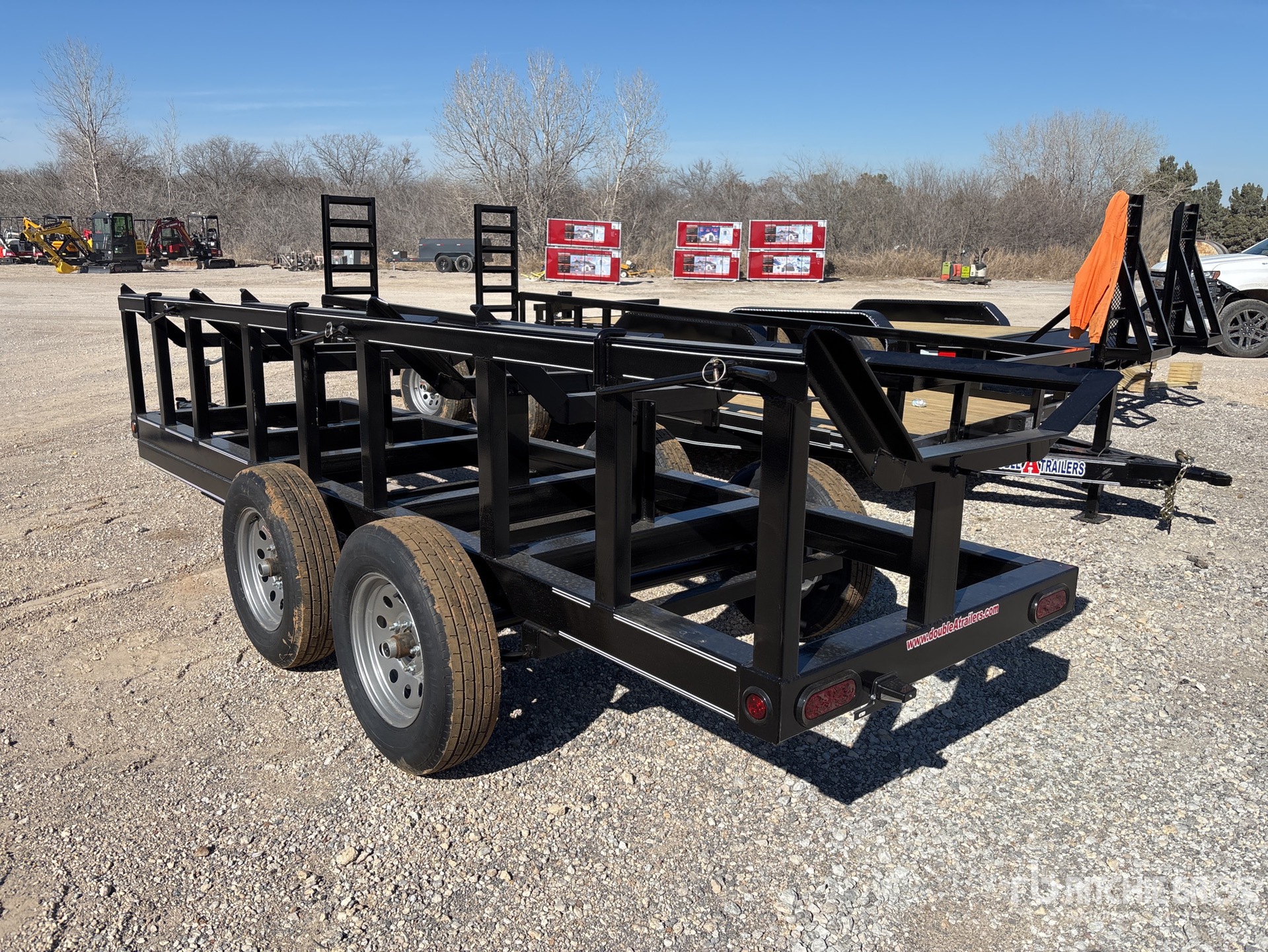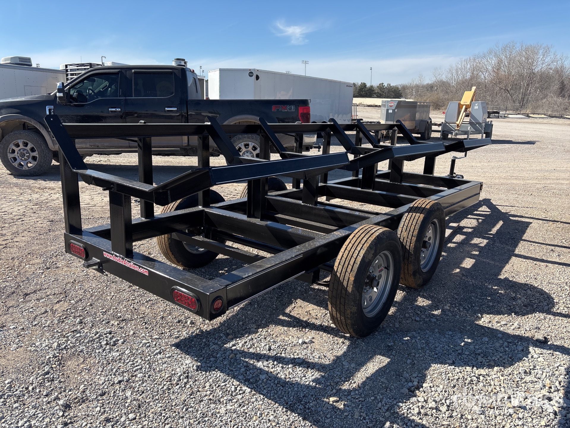 4 X 15 T/A 3500#, 3-BALE HAY MOVER, Rectangle Tubeing Frame, 2" RAM Coupler, 2K Set Back Jack, ST205/75R15, 5" Channel Wrap Tongue, Wiring and LED Lights, Safety Chains, 4 Way Plug, Spare rack