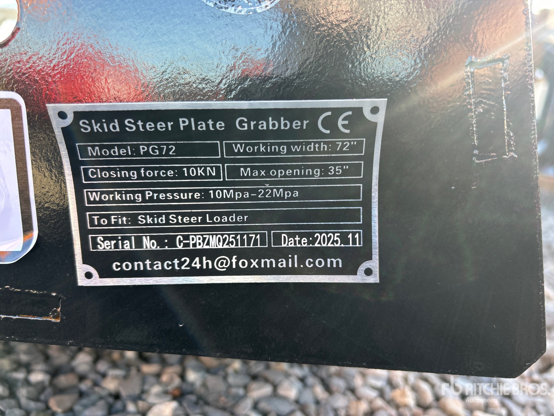 Szczegółowe informacje o sprzęcie mają ograniczony zakres, a firma Ritchie Bros. Auctioneers nie sprawdzała żadnych aspektów ani komponentów urządzenia innych niż wyraźnie określone w niniejszym dokumencie. O ile nie zostało to wyraźnie stwierdzone, nie składamy żadnych oświadczeń ani gwarancji, wyraźnych lub dorozumianych, dotyczących sprzętu lub jego komponentów, w tym między innymi oświadczeń lub gwarancji dotyczących funkcjonalności lub zgodności z jakąkolwiek normą bezpieczeństwa bądź wymogami jakiegokolwiek właściwego organu lub organu regulacyjnego, przydatności do określonego celu lub przydatności handlowej. Zdecydowanie zaleca się przeprowadzenie własnej szczegółowej inspekcji sprzętu przed złożeniem oferty.