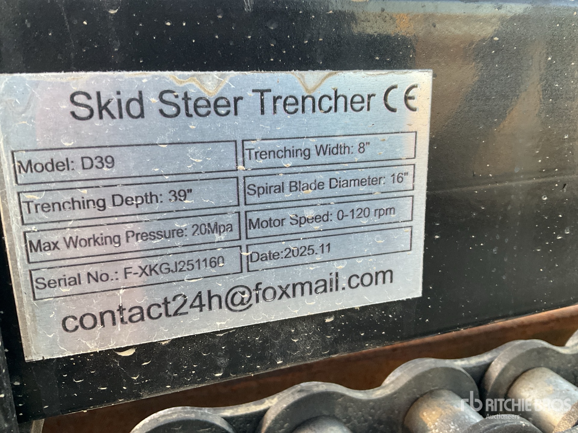 Szczegółowe informacje o sprzęcie mają ograniczony zakres, a firma Ritchie Bros. Auctioneers nie sprawdzała żadnych aspektów ani komponentów urządzenia innych niż wyraźnie określone w niniejszym dokumencie. O ile nie zostało to wyraźnie stwierdzone, nie składamy żadnych oświadczeń ani gwarancji, wyraźnych lub dorozumianych, dotyczących sprzętu lub jego komponentów, w tym między innymi oświadczeń lub gwarancji dotyczących funkcjonalności lub zgodności z jakąkolwiek normą bezpieczeństwa bądź wymogami jakiegokolwiek właściwego organu lub organu regulacyjnego, przydatności do określonego celu lub przydatności handlowej. Zdecydowanie zaleca się przeprowadzenie własnej szczegółowej inspekcji sprzętu przed złożeniem oferty.