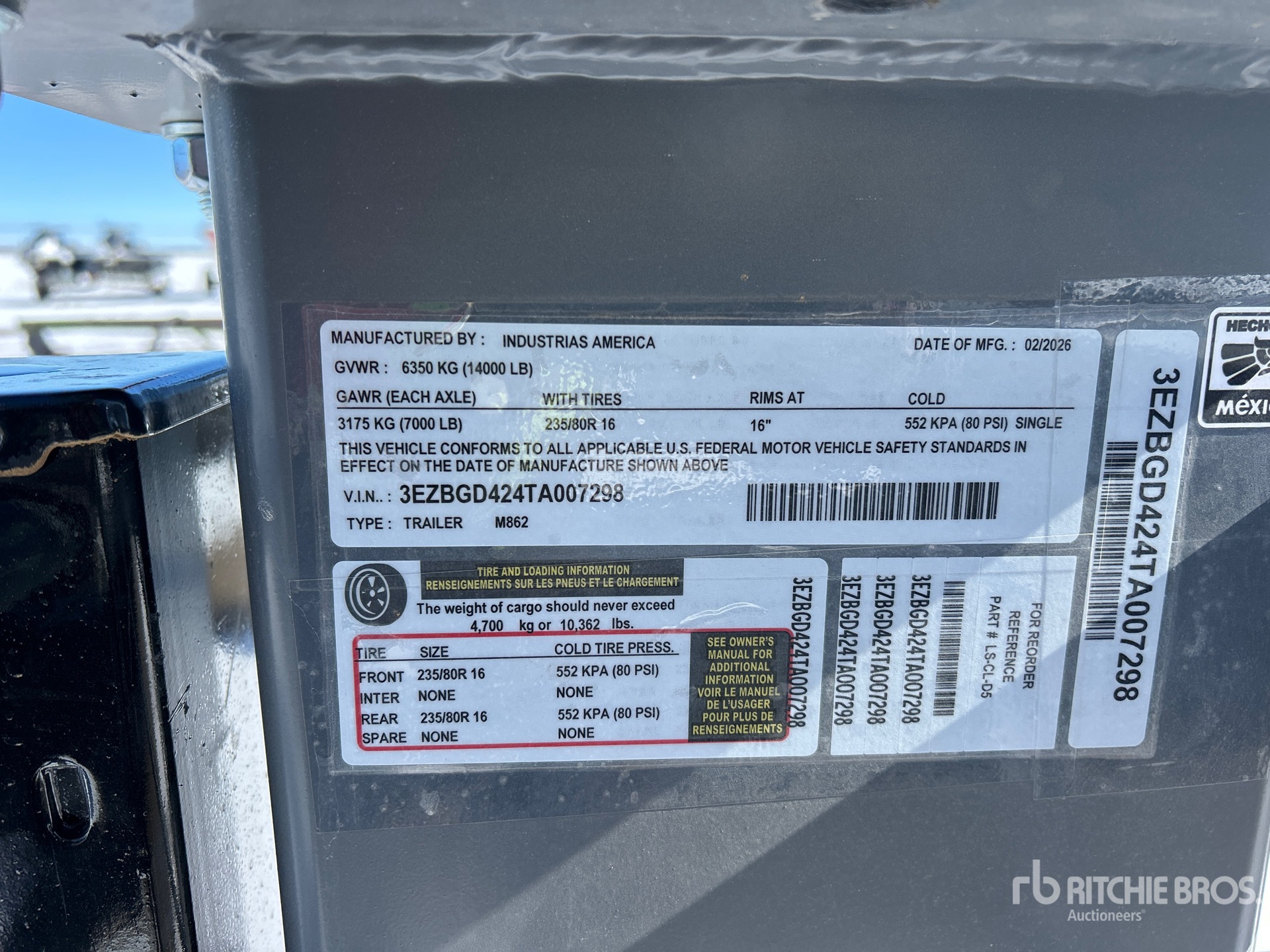 Szczegółowe informacje o sprzęcie mają ograniczony zakres, a firma Ritchie Bros. Auctioneers nie sprawdzała żadnych aspektów ani komponentów urządzenia innych niż wyraźnie określone w niniejszym dokumencie. O ile nie zostało to wyraźnie stwierdzone, nie składamy żadnych oświadczeń ani gwarancji, wyraźnych lub dorozumianych, dotyczących sprzętu lub jego komponentów, w tym między innymi oświadczeń lub gwarancji dotyczących funkcjonalności lub zgodności z jakąkolwiek normą bezpieczeństwa bądź wymogami jakiegokolwiek właściwego organu lub organu regulacyjnego, przydatności do określonego celu lub przydatności handlowej. Zdecydowanie zaleca się przeprowadzenie własnej szczegółowej inspekcji sprzętu przed złożeniem oferty.