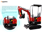 US EPA Label, 2 ft 7 in Stick, Auxiliary Hydraulic Plumbing, Backfill Blade, 7 in Rubber Tracks, 16 in Digging Bucket, Manual Thumb, Product images displayed are stock photos. Item is new/unused.