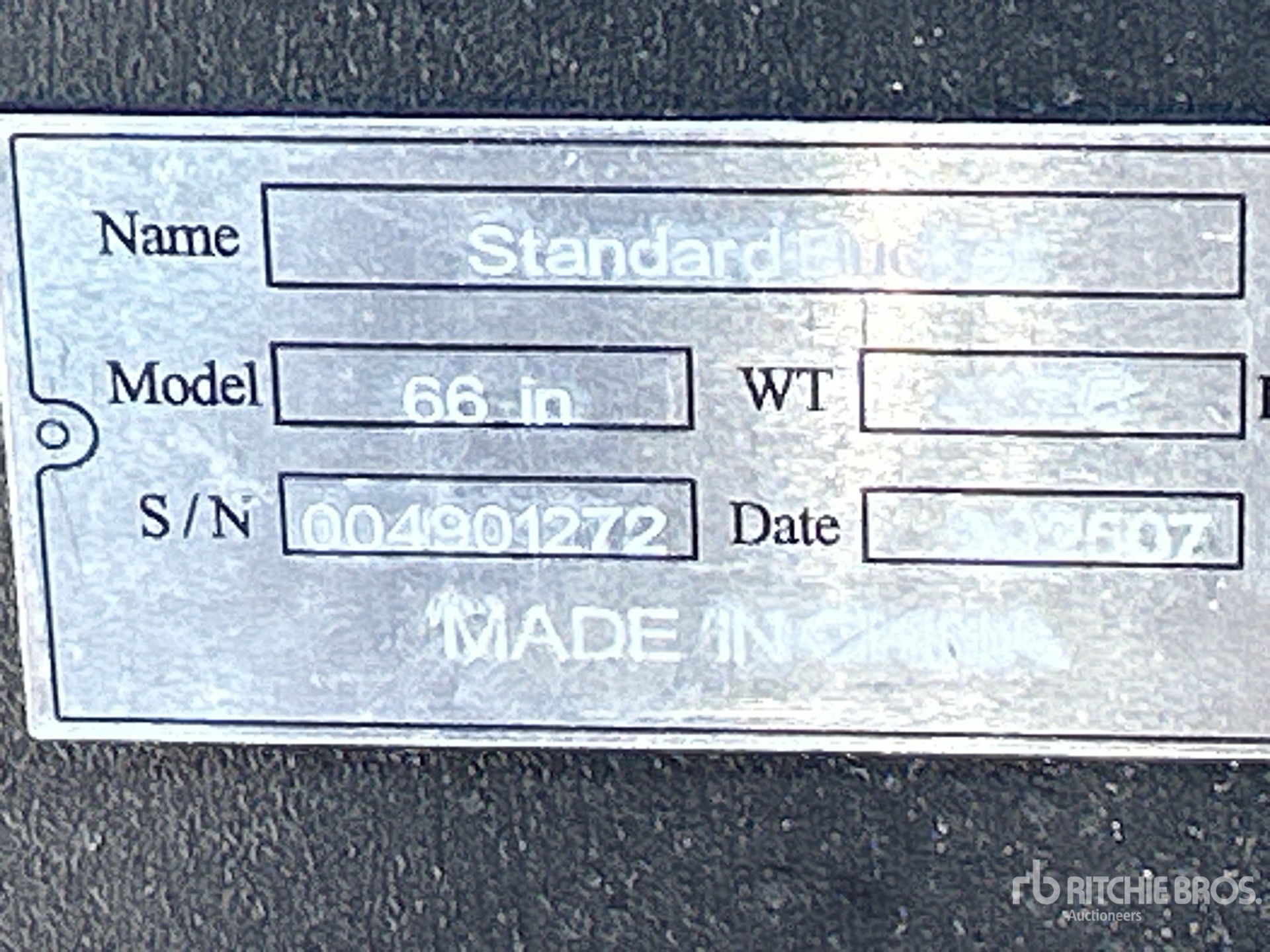 Szczegółowe informacje o sprzęcie mają ograniczony zakres, a firma Ritchie Bros. Auctioneers nie sprawdzała żadnych aspektów ani komponentów urządzenia innych niż wyraźnie określone w niniejszym dokumencie. O ile nie zostało to wyraźnie stwierdzone, nie składamy żadnych oświadczeń ani gwarancji, wyraźnych lub dorozumianych, dotyczących sprzętu lub jego komponentów, w tym między innymi oświadczeń lub gwarancji dotyczących funkcjonalności lub zgodności z jakąkolwiek normą bezpieczeństwa bądź wymogami jakiegokolwiek właściwego organu lub organu regulacyjnego, przydatności do określonego celu lub przydatności handlowej. Zdecydowanie zaleca się przeprowadzenie własnej szczegółowej inspekcji sprzętu przed złożeniem oferty.