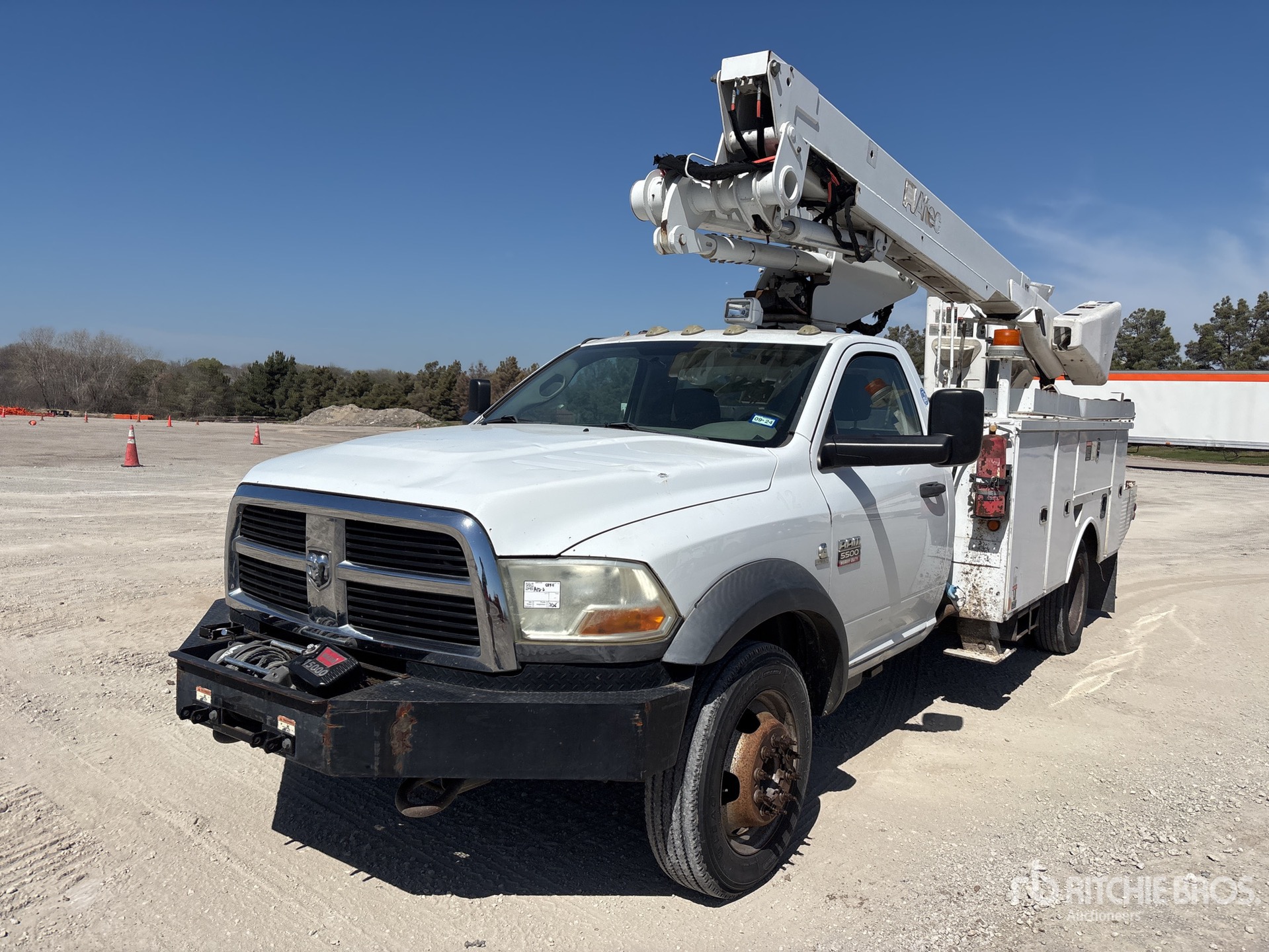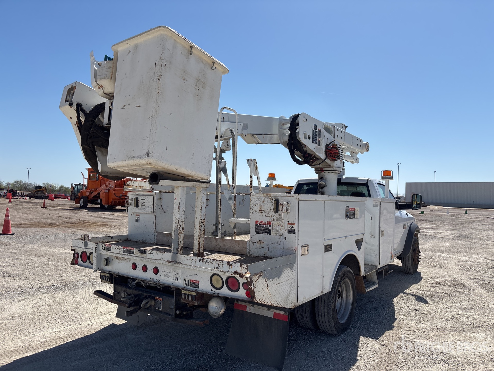 Cummins 6.7 L Diesel Engine, Automatic Transmission, 7000 lb Front Axle, 13500 lb Rears, 19500 lb GVWR, 225/70R19.5, Spring Suspension, 177 in Wheelbase, PTO, 400 lb Capacity, Front Mounted, One-Person Articulating-Telescopic Boom, Utility Body, Straight Down Outriggers, Bumper Mounted Winch, 13 ft 6 in x 94 in Bed
