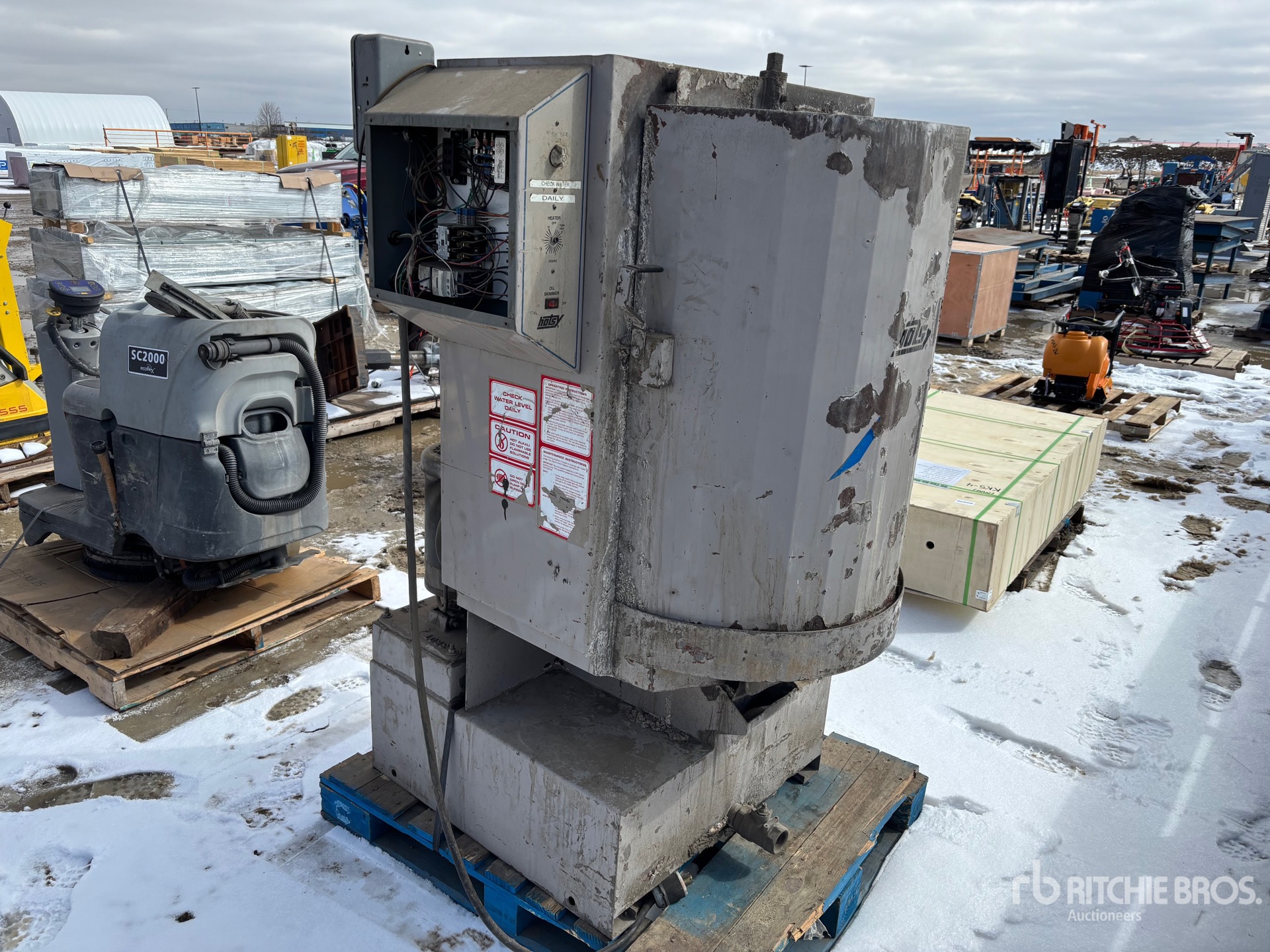 Szczegółowe informacje o sprzęcie mają ograniczony zakres, a firma Ritchie Bros. Auctioneers nie sprawdzała żadnych aspektów ani komponentów urządzenia innych niż wyraźnie określone w niniejszym dokumencie. O ile nie zostało to wyraźnie stwierdzone, nie składamy żadnych oświadczeń ani gwarancji, wyraźnych lub dorozumianych, dotyczących sprzętu lub jego komponentów, w tym między innymi oświadczeń lub gwarancji dotyczących funkcjonalności lub zgodności z jakąkolwiek normą bezpieczeństwa bądź wymogami jakiegokolwiek właściwego organu lub organu regulacyjnego, przydatności do określonego celu lub przydatności handlowej. Zdecydowanie zaleca się przeprowadzenie własnej szczegółowej inspekcji sprzętu przed złożeniem oferty.