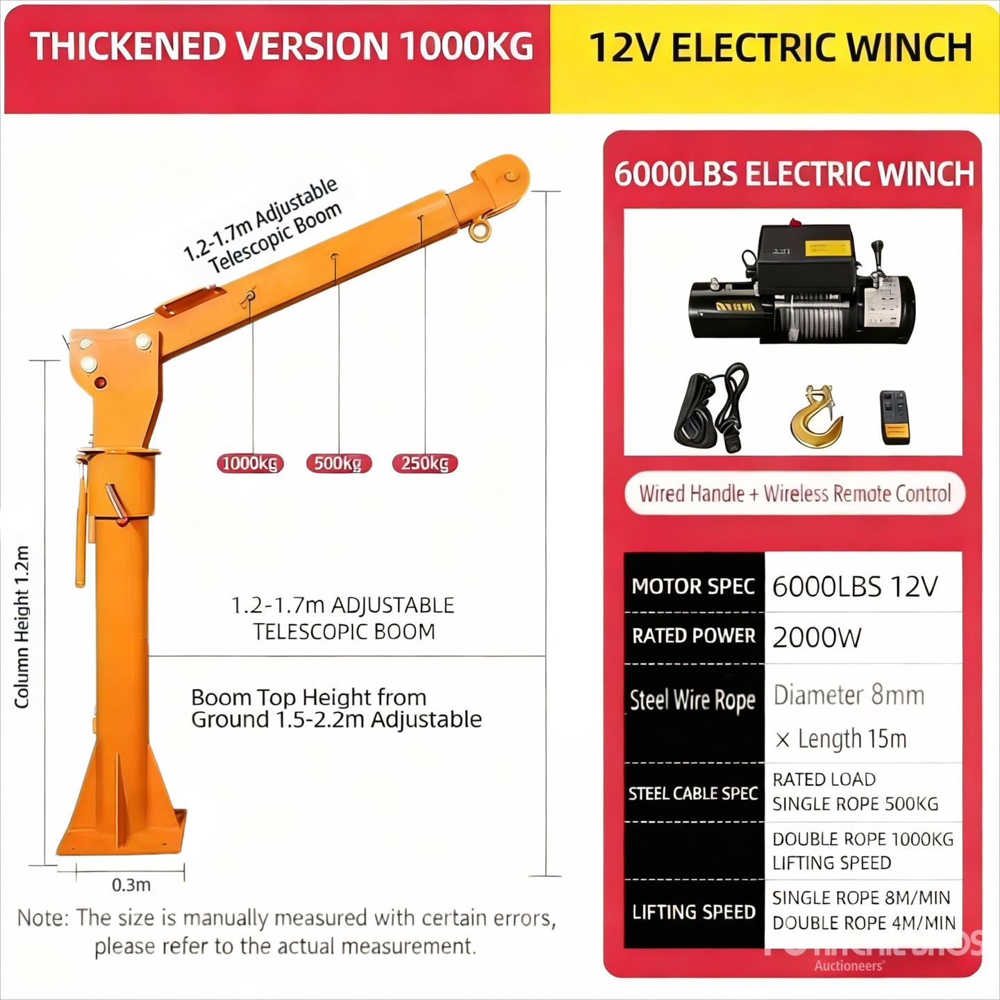 Podane wymiary mają jedynie charakter szacunkowy. Rzeczywiste wymiary z ładunkiem mogą się różnić w zależności od wysokości ciężarówki/przyczepy oraz konfiguracji/pozycji załadowanej maszyny. Obowiązkiem nabywcy jest pomiar wszystkich ładunków przed opuszczeniem naszego placu aukcyjnego, aby upewnić się, że ładunek jest bezpieczny podczas transportu. Wszystkie pomiary powinny zostać zweryfikowane przez nabywcę. Nie należy polegać na tych pomiarach do celów transportowych.