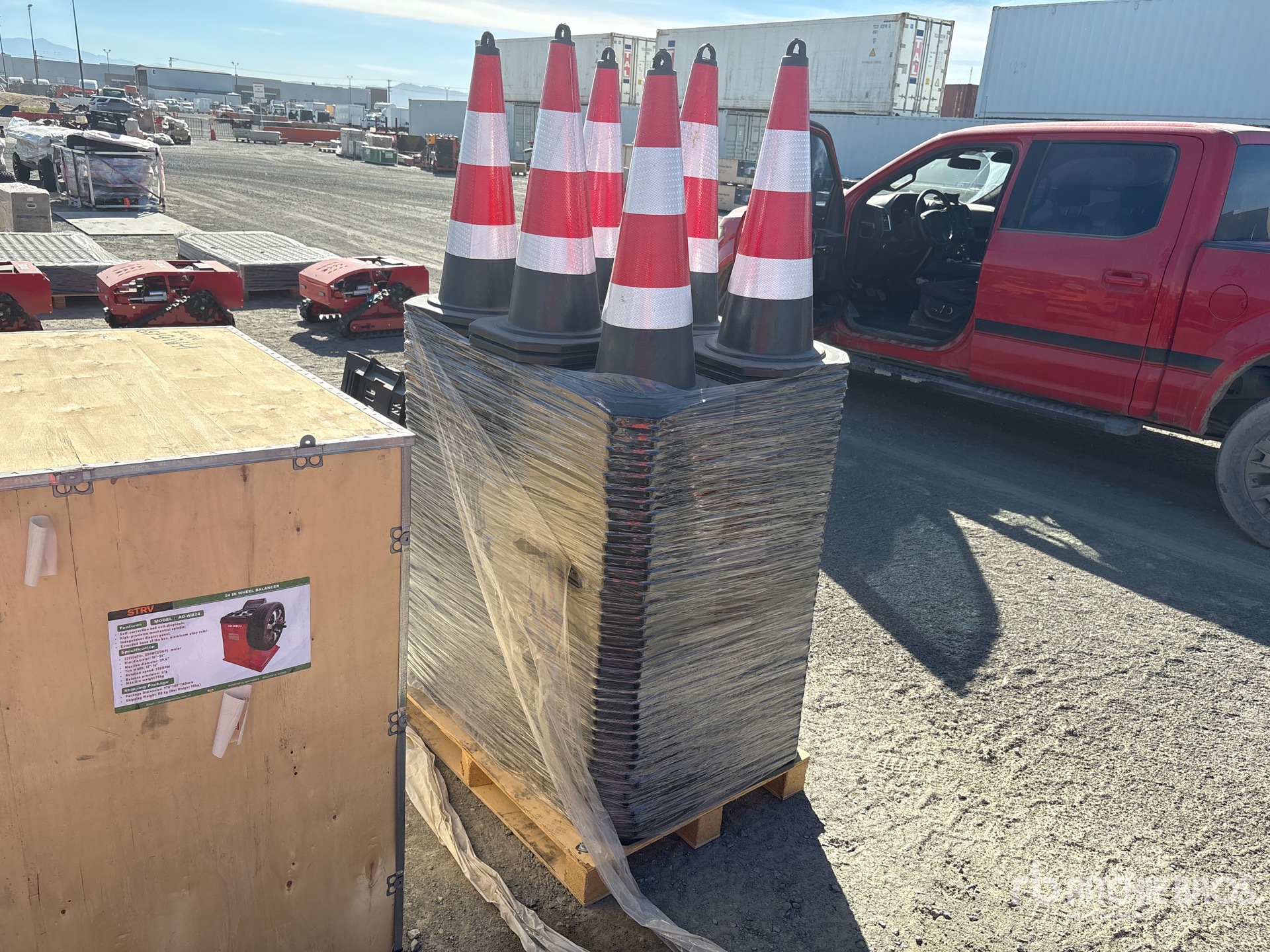 Podane wymiary mają jedynie charakter szacunkowy. Rzeczywiste wymiary z ładunkiem mogą się różnić w zależności od wysokości ciężarówki/przyczepy oraz konfiguracji/pozycji załadowanej maszyny. Obowiązkiem nabywcy jest pomiar wszystkich ładunków przed opuszczeniem naszego placu aukcyjnego, aby upewnić się, że ładunek jest bezpieczny podczas transportu. Wszystkie pomiary powinny zostać zweryfikowane przez nabywcę. Nie należy polegać na tych pomiarach do celów transportowych.