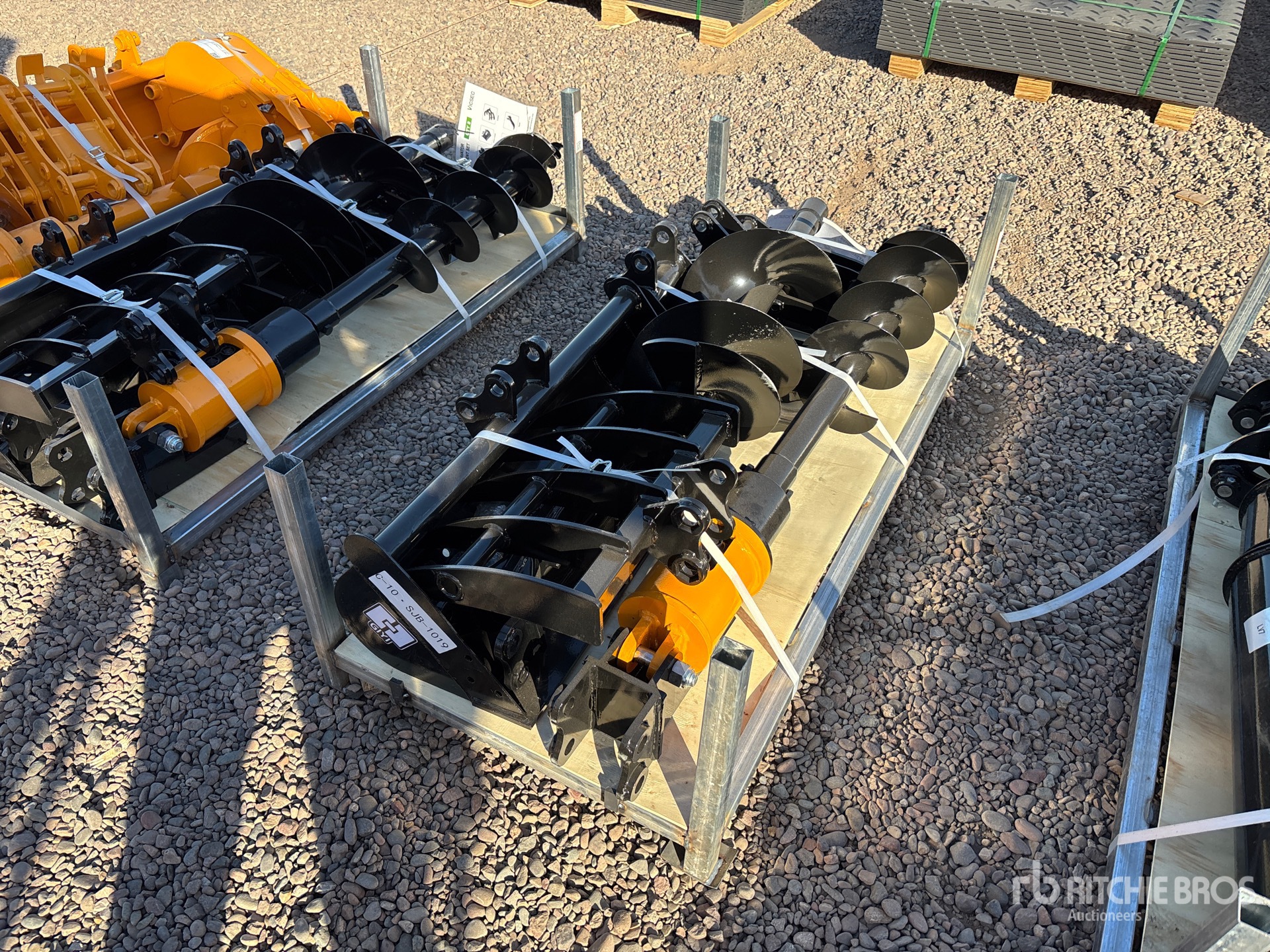 (1) Rake, (1) Ripper, (1) Grapple, (1) Auger w/ 12 in & 16 in Auger Bits, (1) 8 in Narrow Bucket, (1) 24 in Bucket, (1) 32 in Bucket